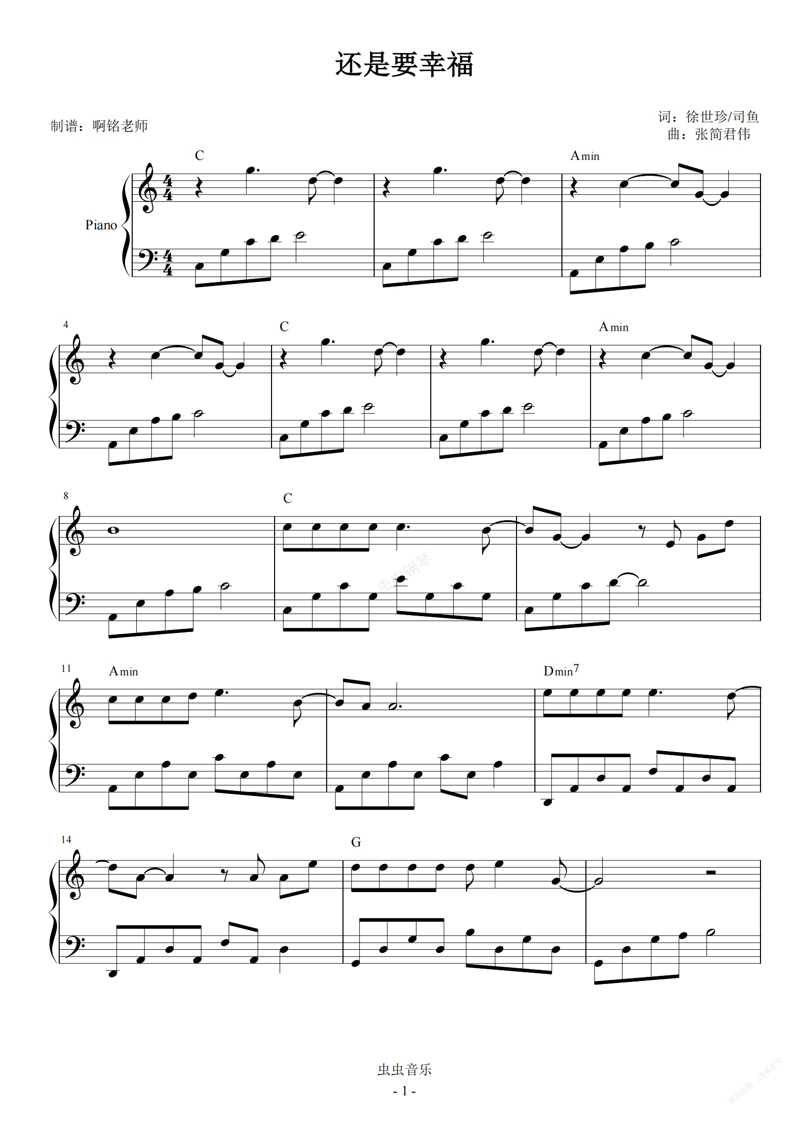 钢琴谱:还是要幸福 C调简易 原曲和弦
