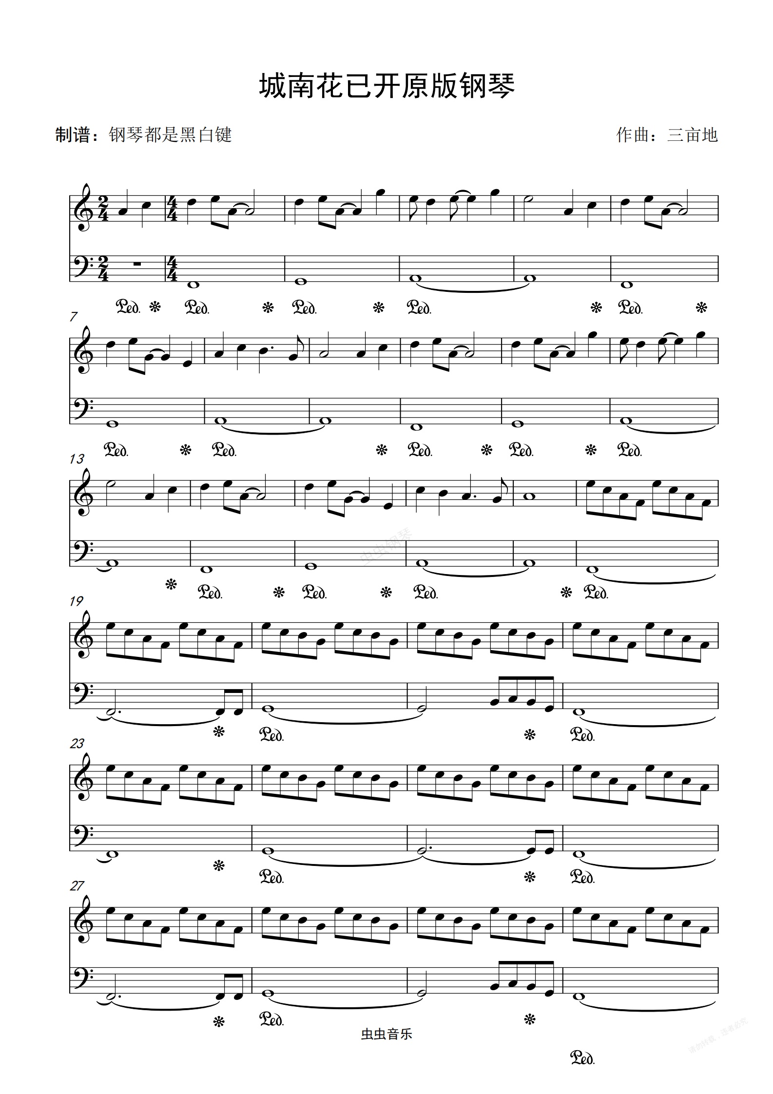 城南花已开 原版钢琴