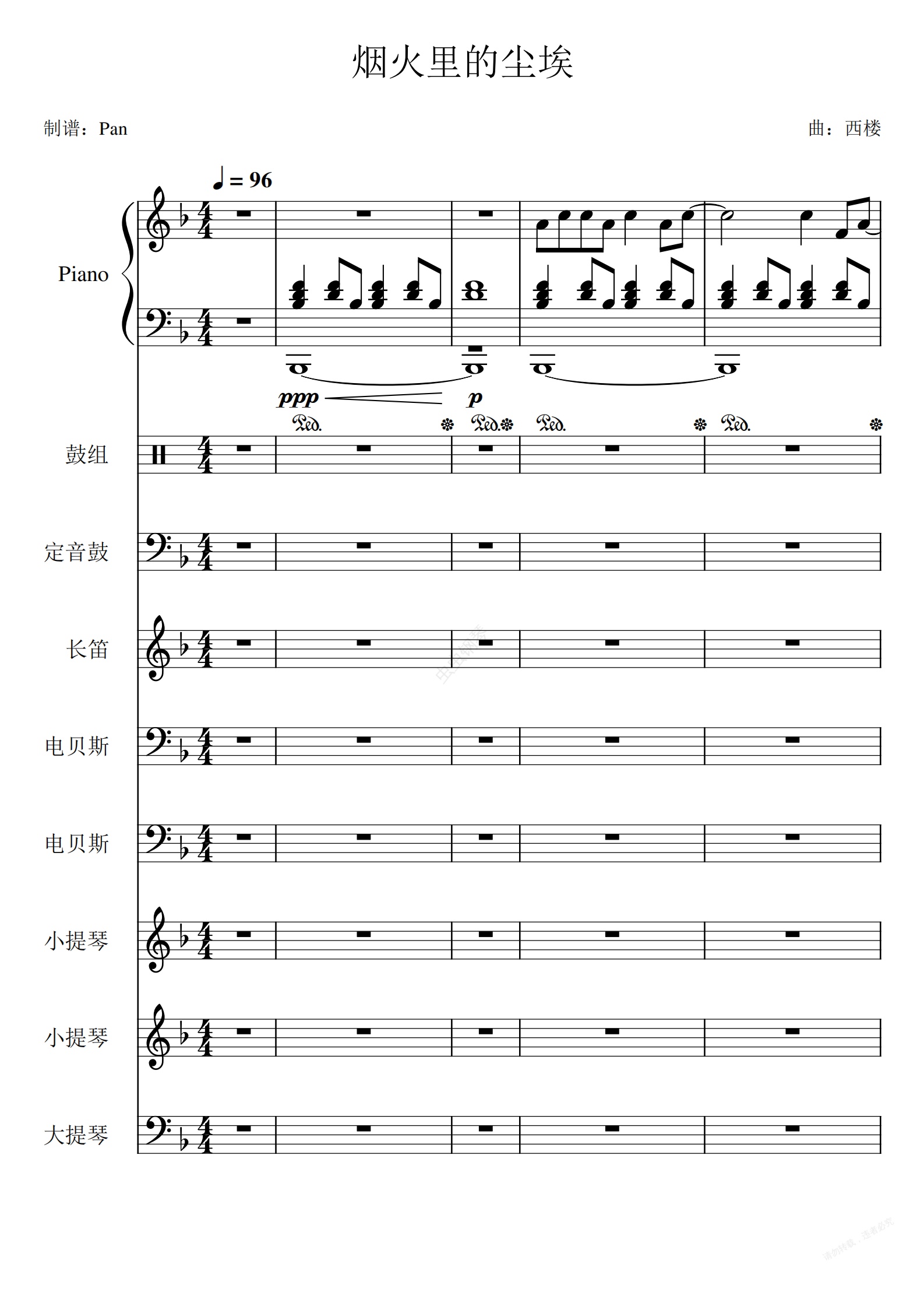 钢琴谱:烟火里的尘埃 - 华晨宇 原唱总谱