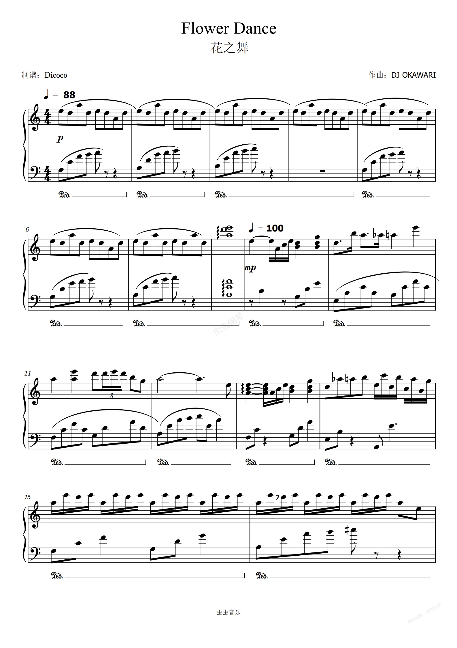 钢琴谱:花之舞【C调】Flower Dance Dj Okawari