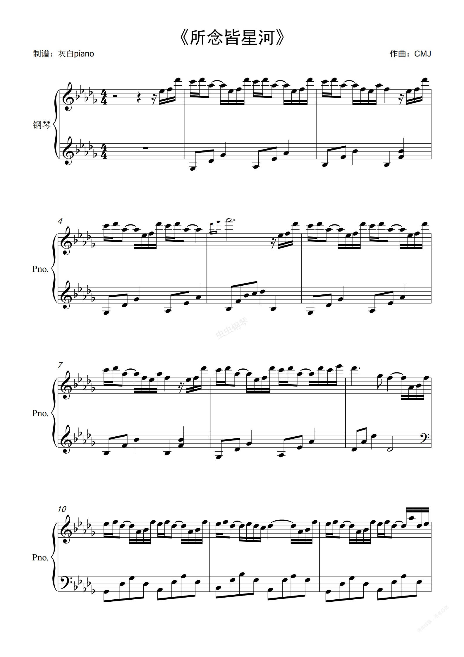 钢琴谱:《所念皆星河》-CMJ 灰白优化版本