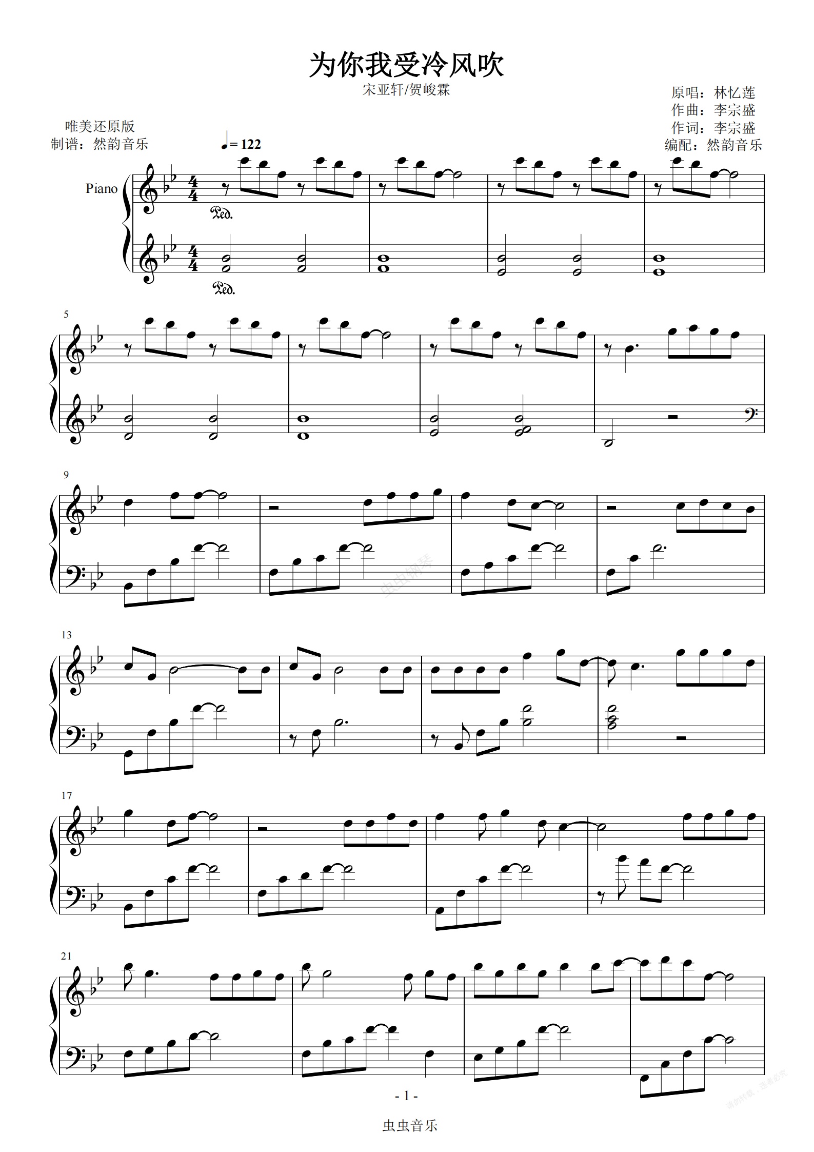 钢琴谱:为你我受冷风吹-宋亚轩/贺峻霖 钢琴唯美独奏【然韵音乐编配】TNT时代少年团公演