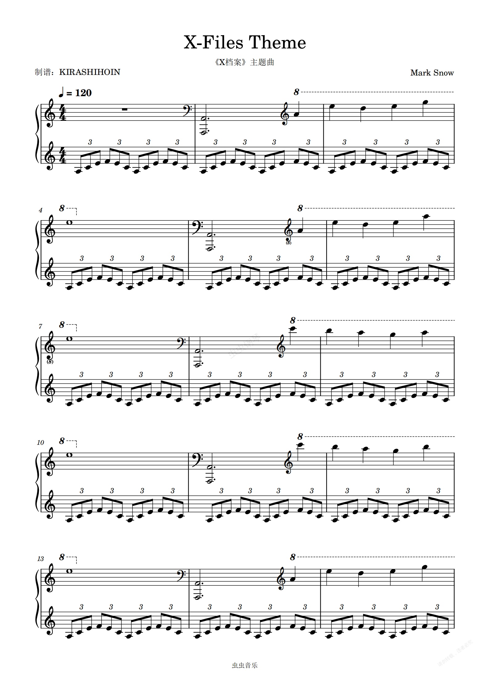 钢琴谱:X-Files Theme(《X档案》主题曲)