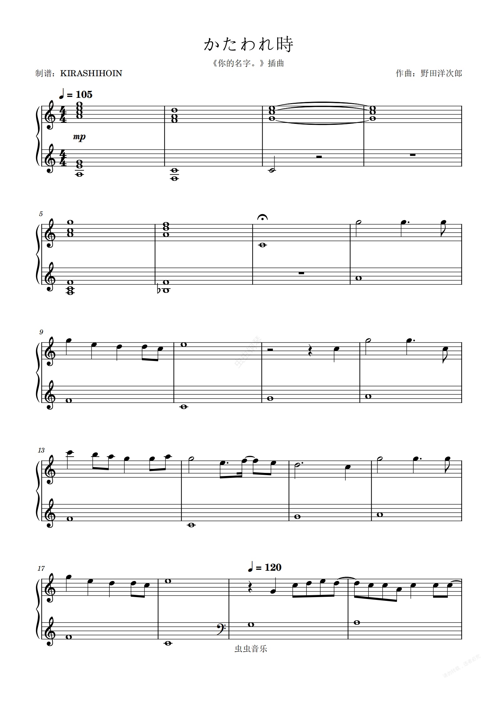 钢琴谱:かたわれ時(《你的名字。》插曲)