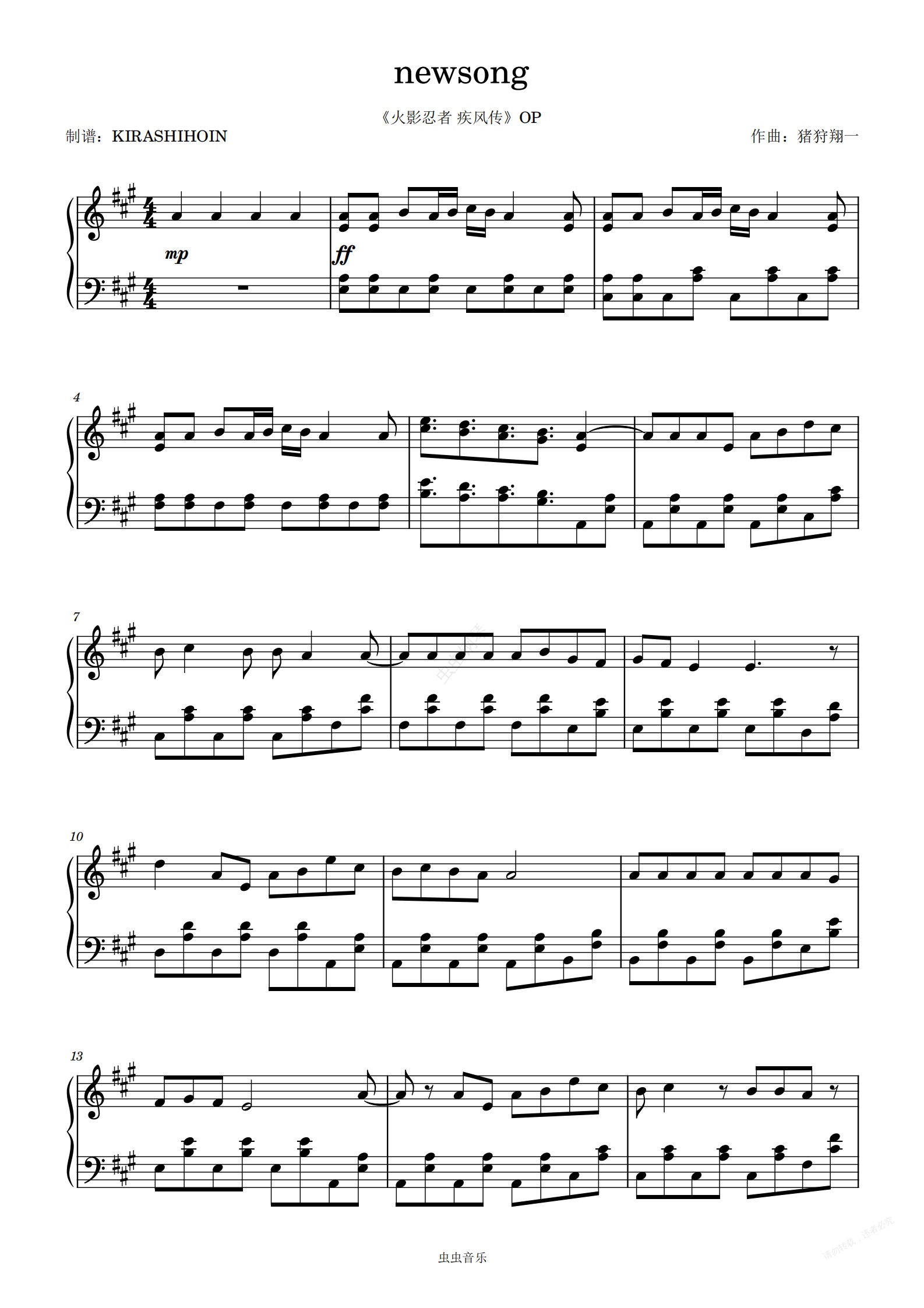 钢琴谱:newsong(《火影忍者 疾风传》OP)