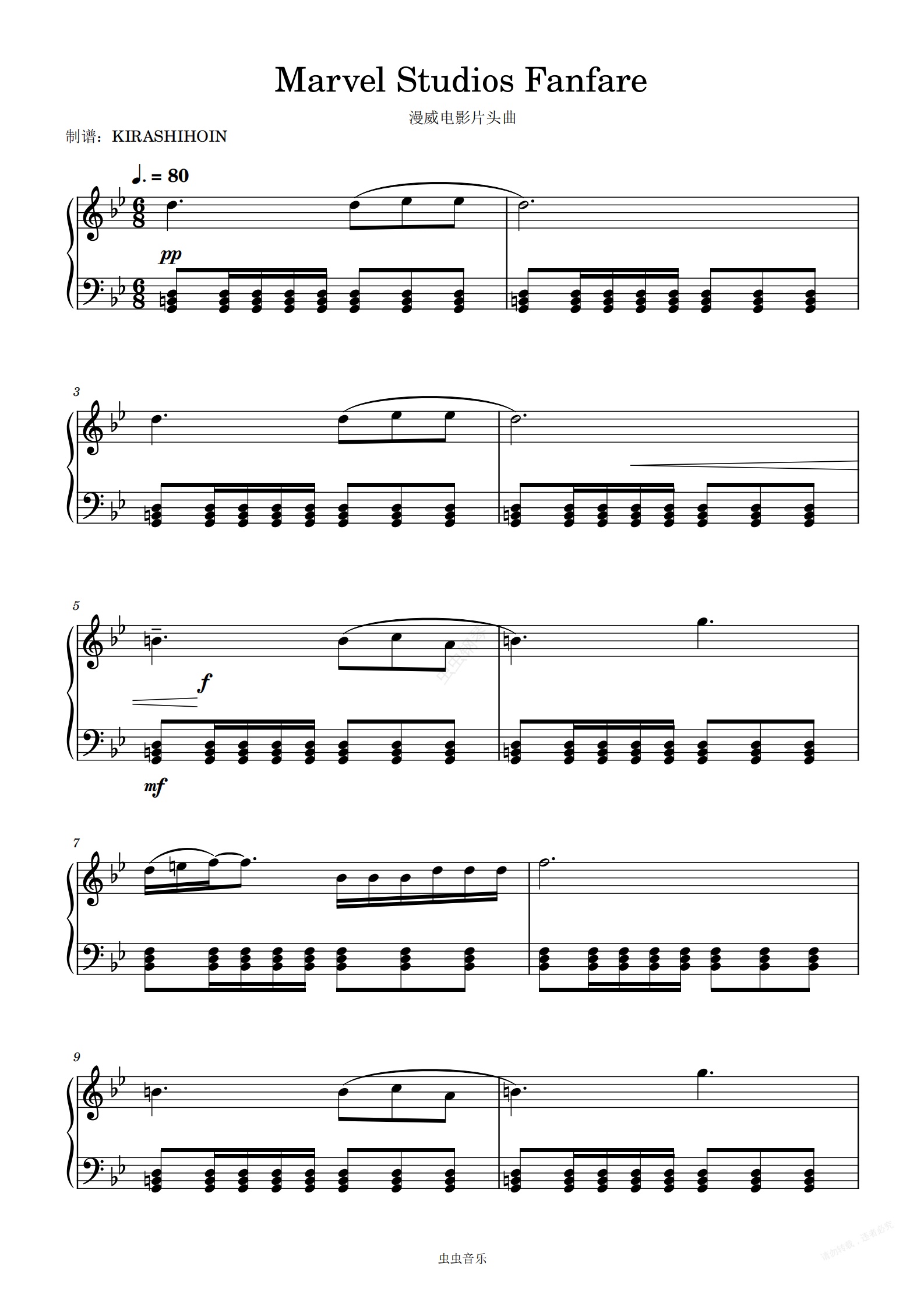 钢琴谱:Marvel Studios Fanfare(漫威电影片头曲)