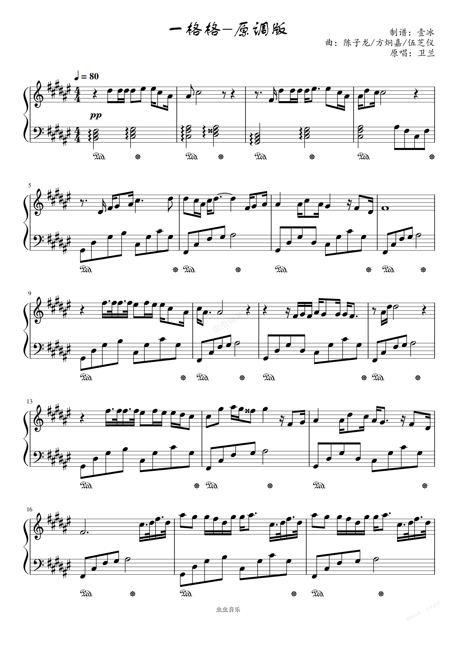 钢琴谱:一格格//卫兰-原调版