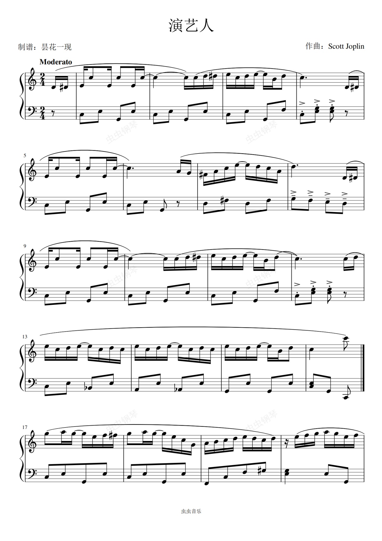 钢琴谱:The Entertainer 演艺人