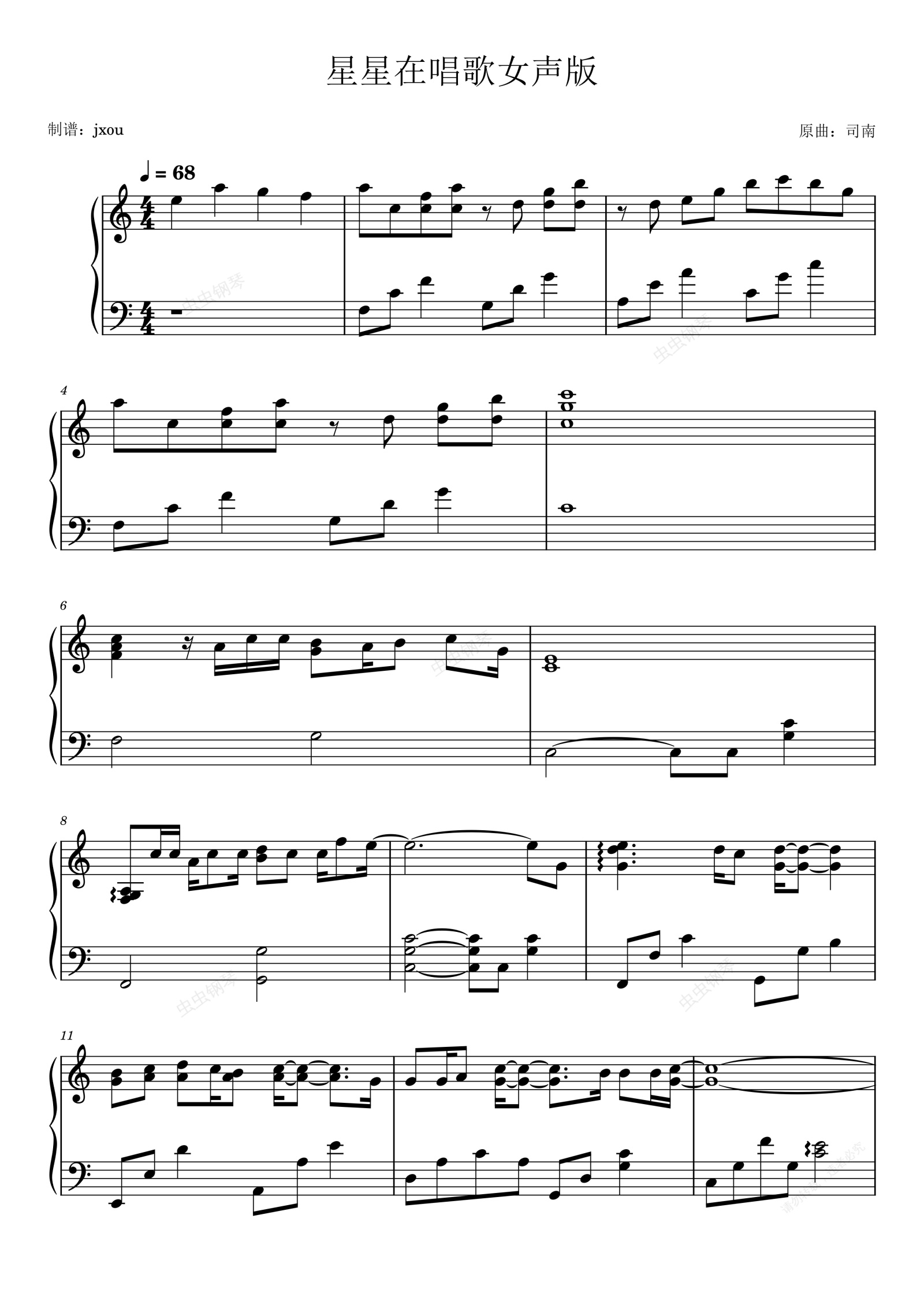 钢琴谱:司南 - 星星在唱歌 C调完美还原版