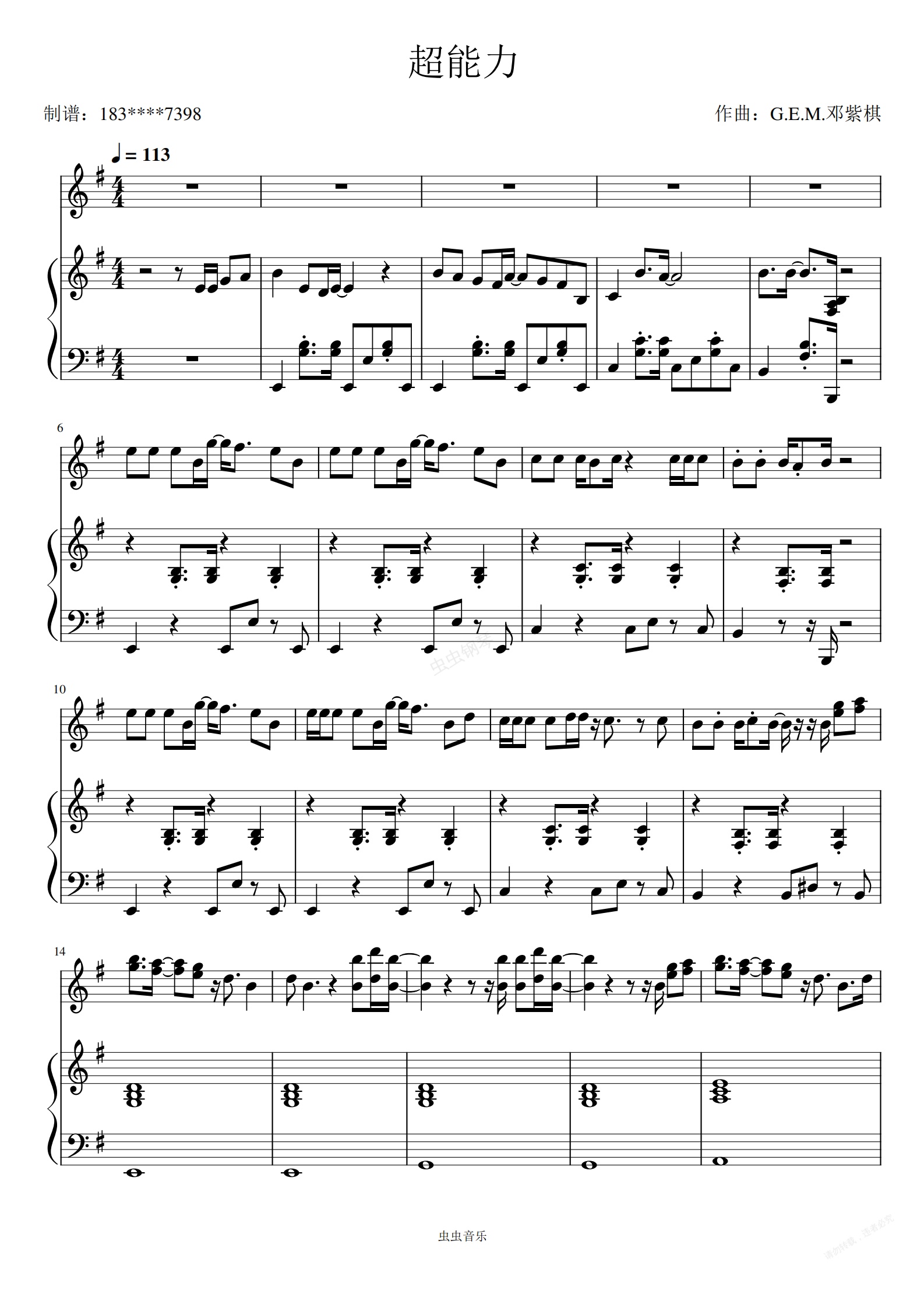 钢琴谱:超能力 超能力 E小调入门简单 弹唱