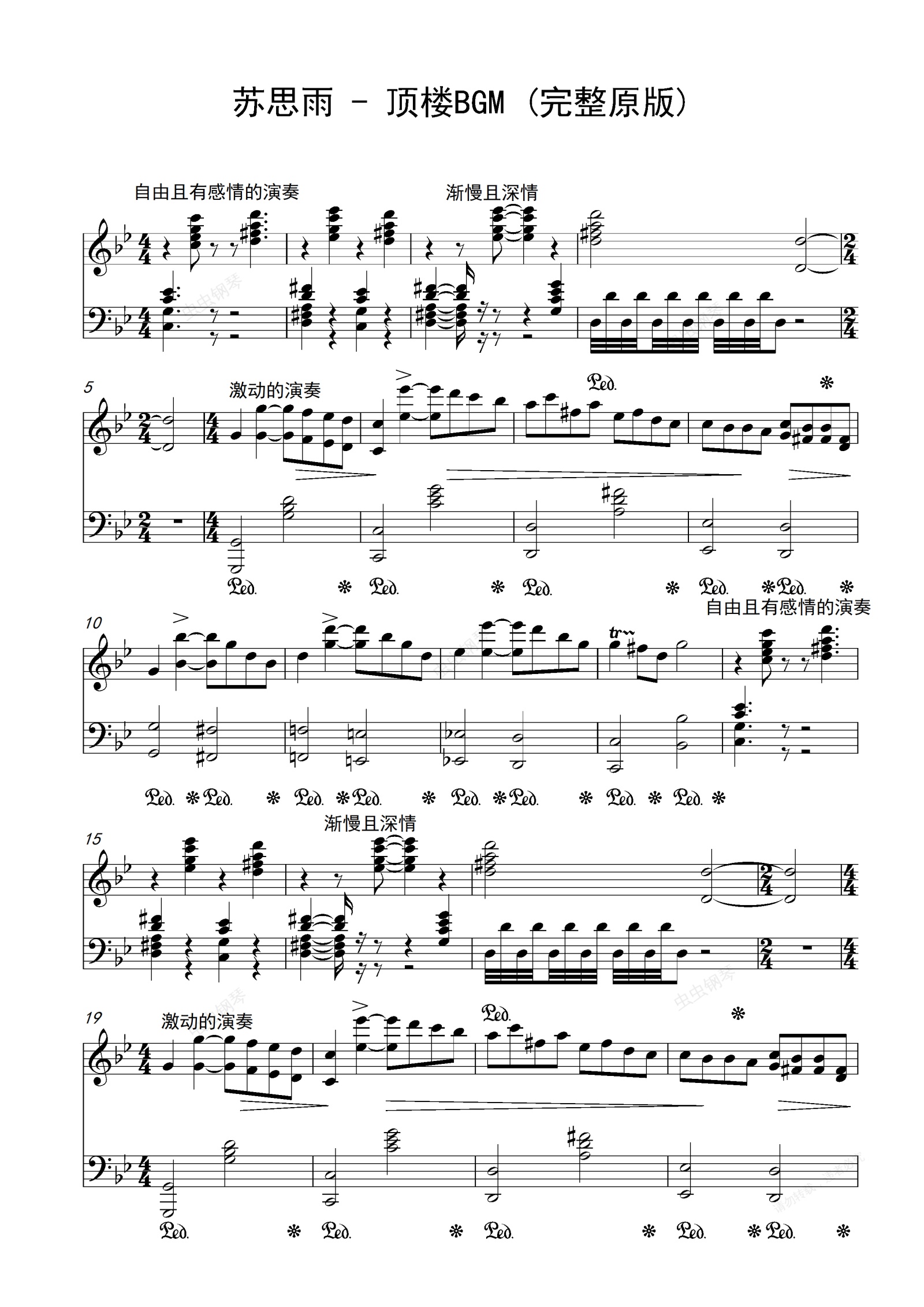 钢琴谱:苏思雨 - 顶楼BGM (完整原版)