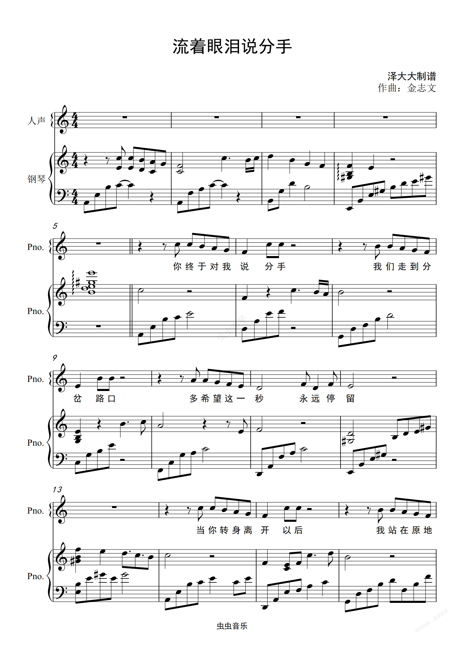 钢琴谱:流着眼泪说分手【苏立生完美弹唱伴奏附词】泽大大