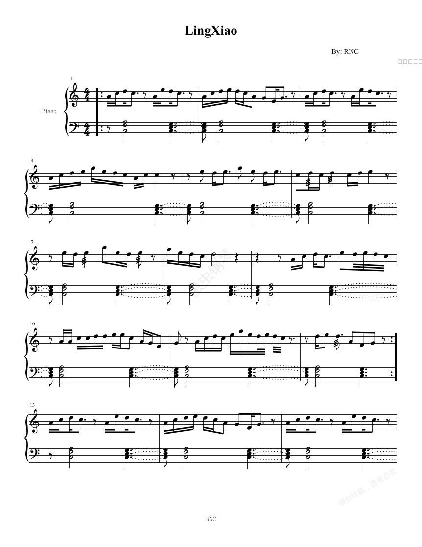 钢琴谱:LingXiao (C调)