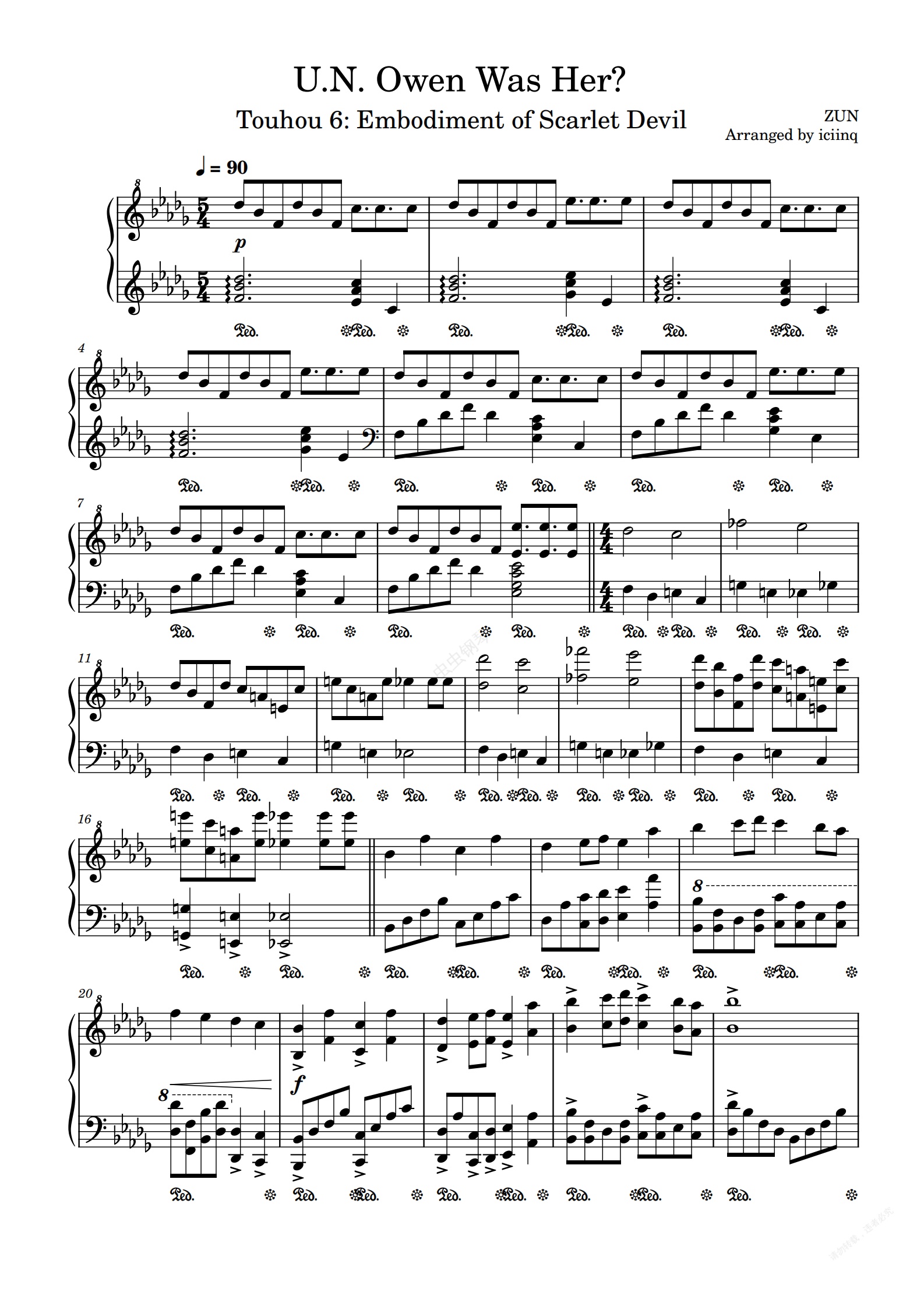 钢琴谱:【东方红魔乡】U.N.OWEN就是她吗?