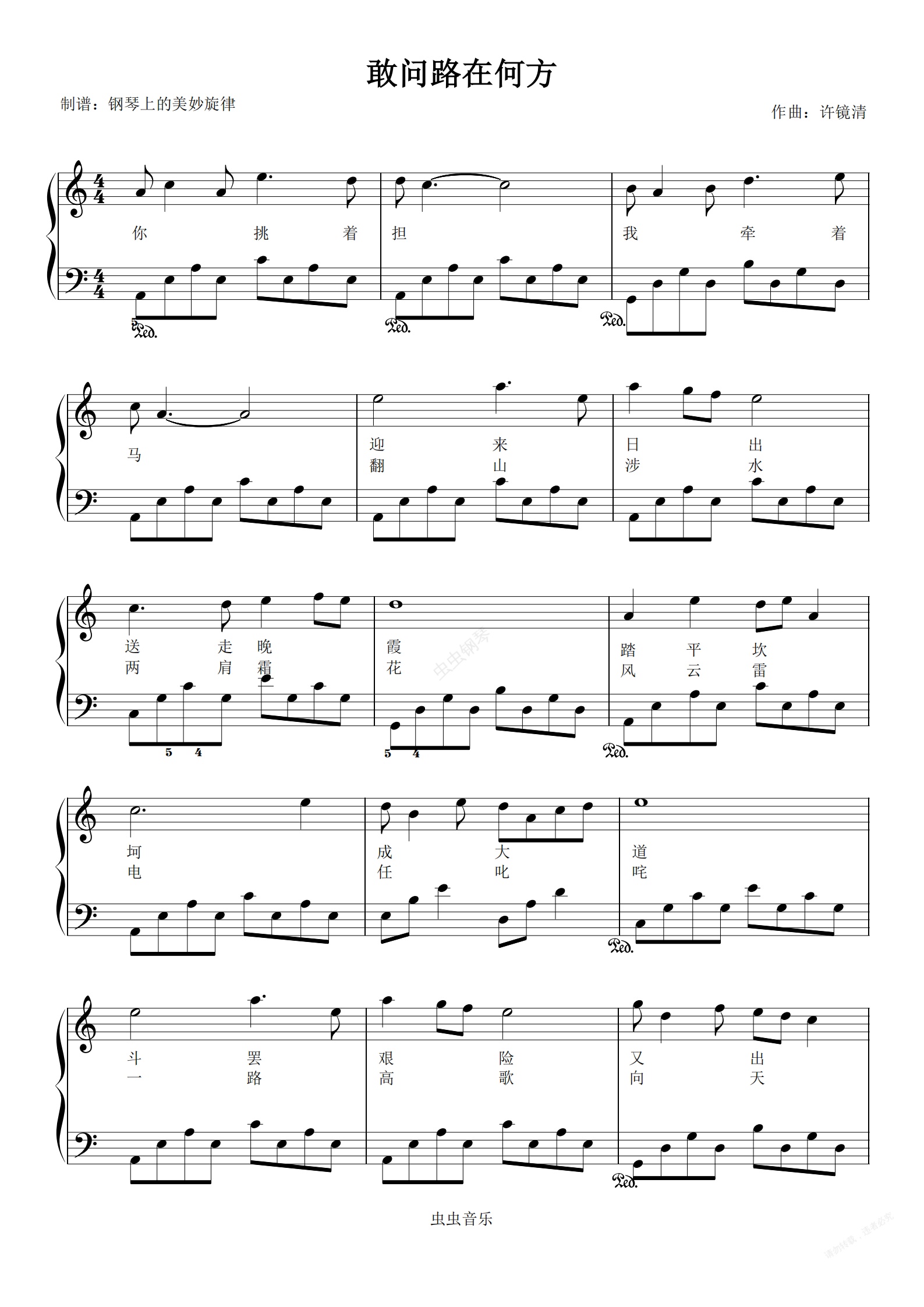 钢琴谱:敢问路在何方 C调简易版  经典的回忆