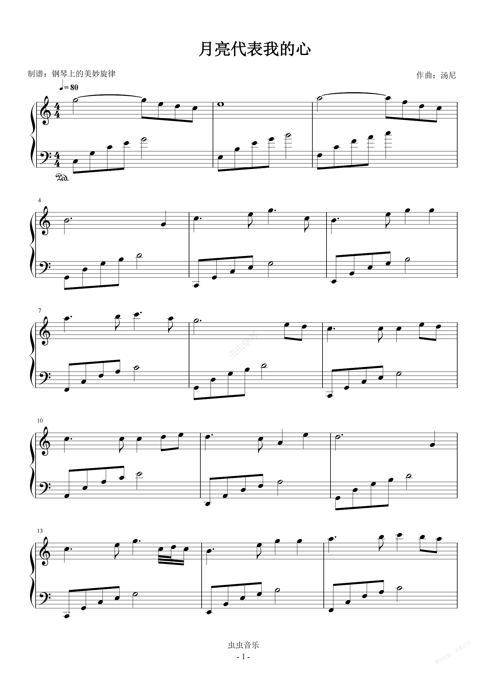 钢琴谱:月亮代表我的心 C调简易版 经典的回忆