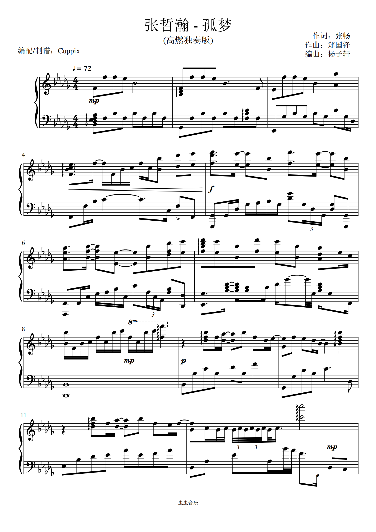 钢琴谱:张哲瀚《孤梦》Cuppix改编-唯美高度还原(《山河令》插曲)
