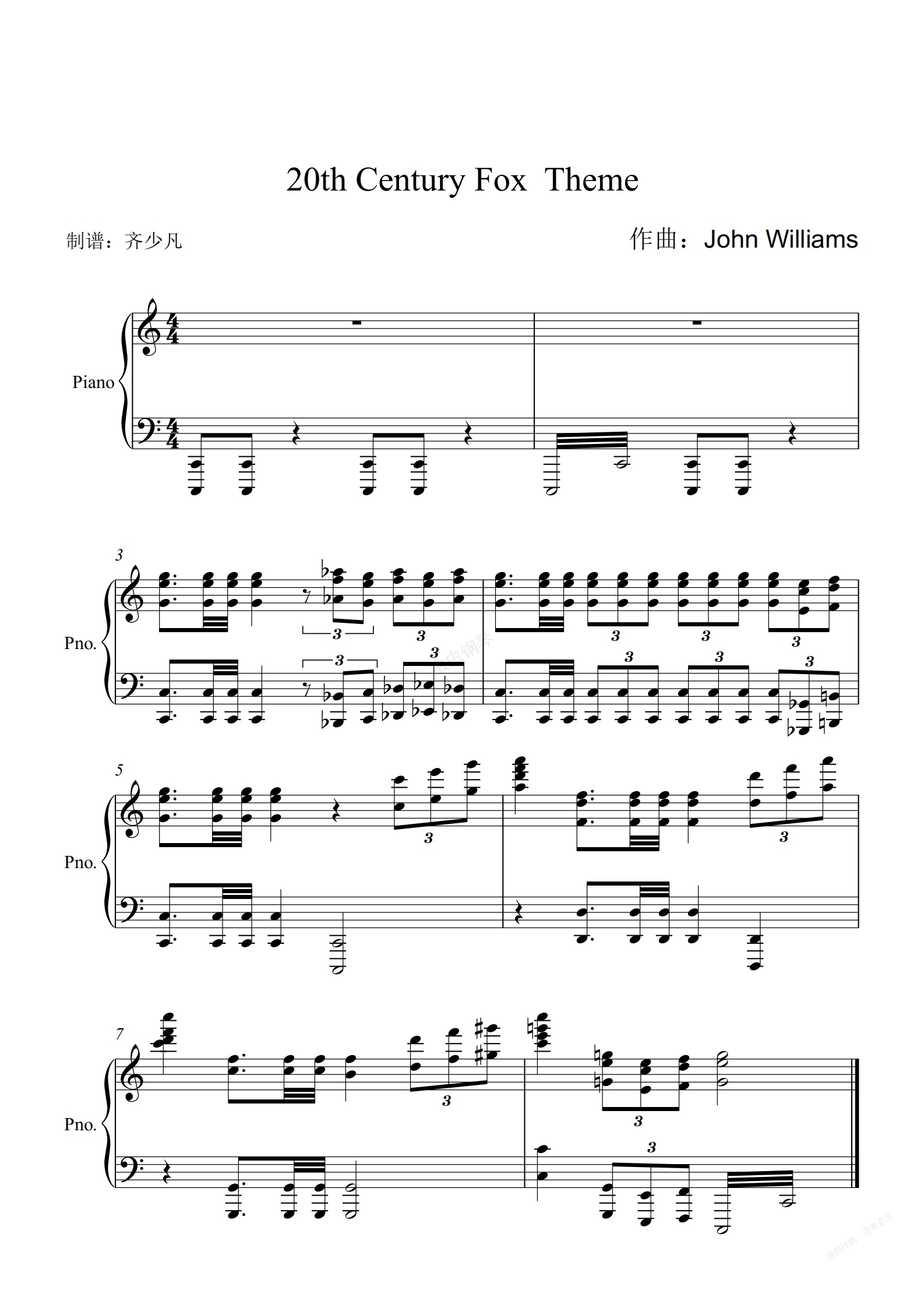 钢琴谱:二十世纪福克斯电影公司片头曲