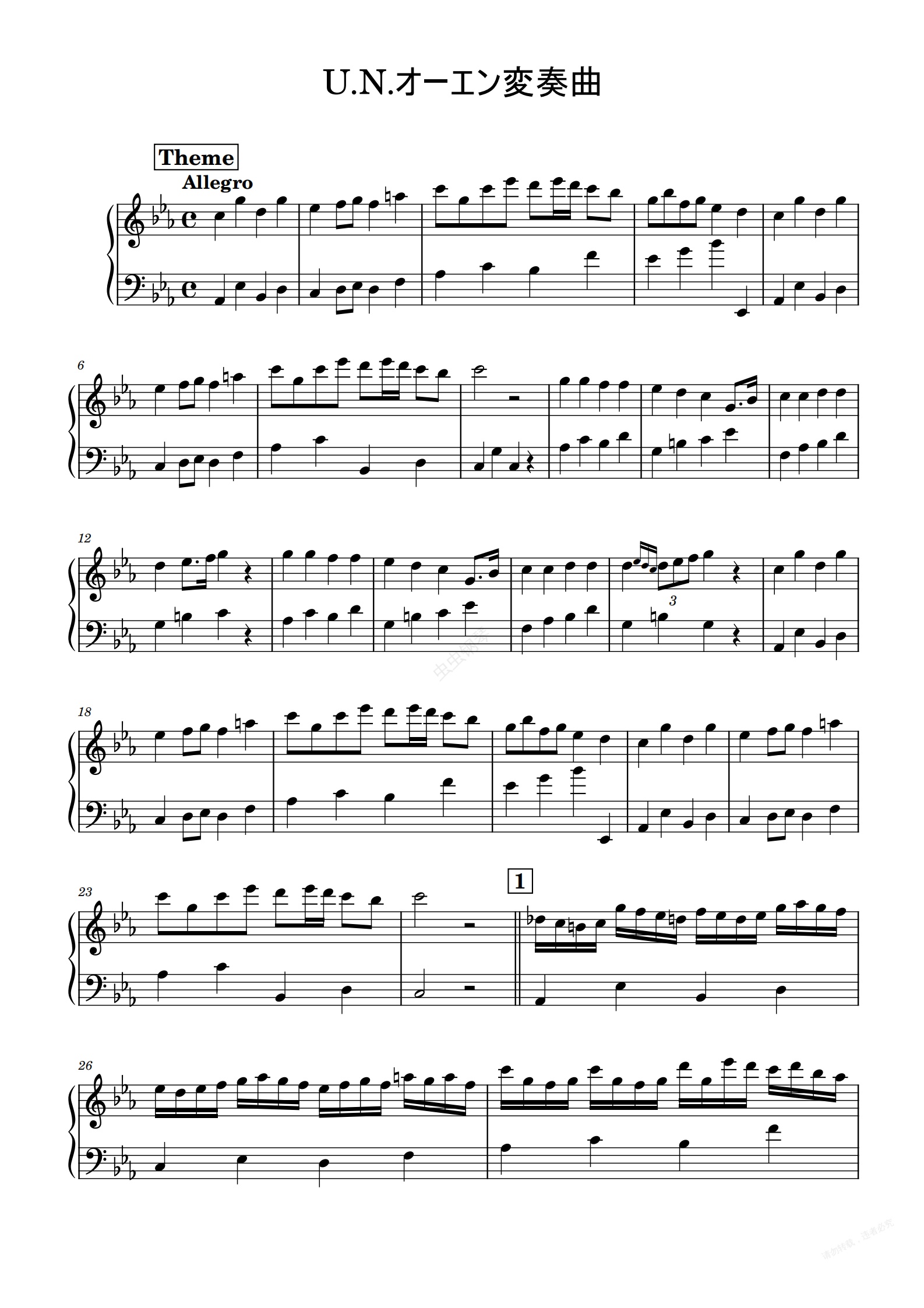 钢琴谱:【东方曲再编】U.N.オーエン変奏曲