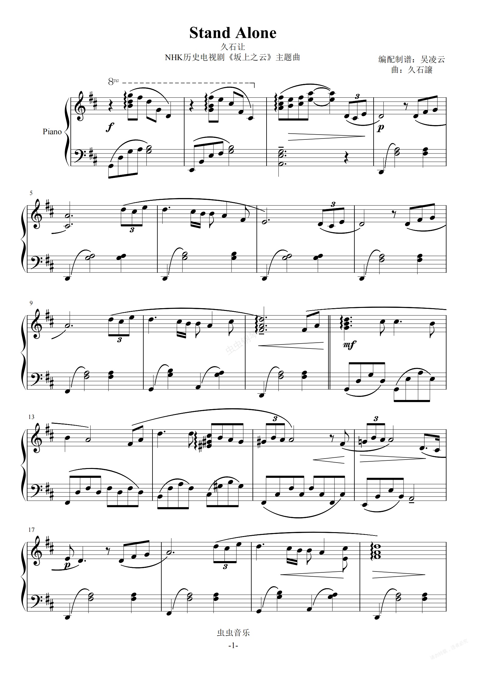 钢琴谱:Stand Alone 久石让 《坂上之云》主题曲 吴凌云钢琴演奏版