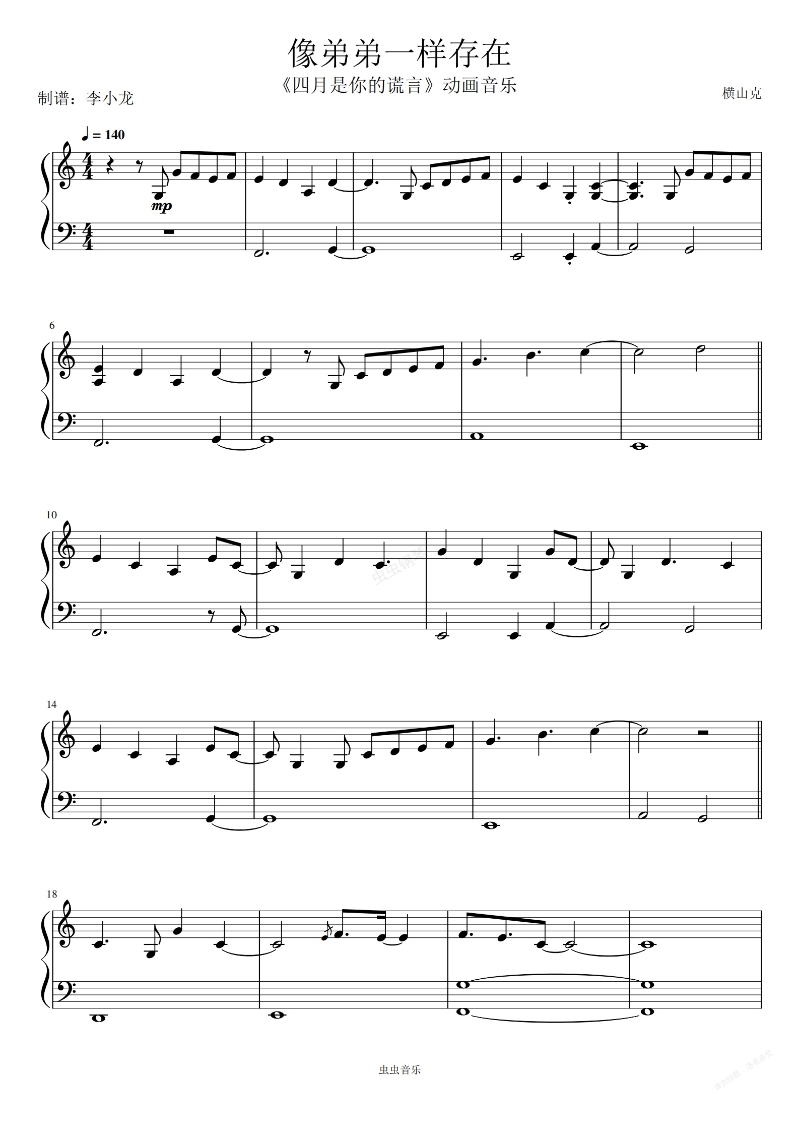 钢琴谱:像弟弟一样存在 -《四月是你的谎言》动画音乐