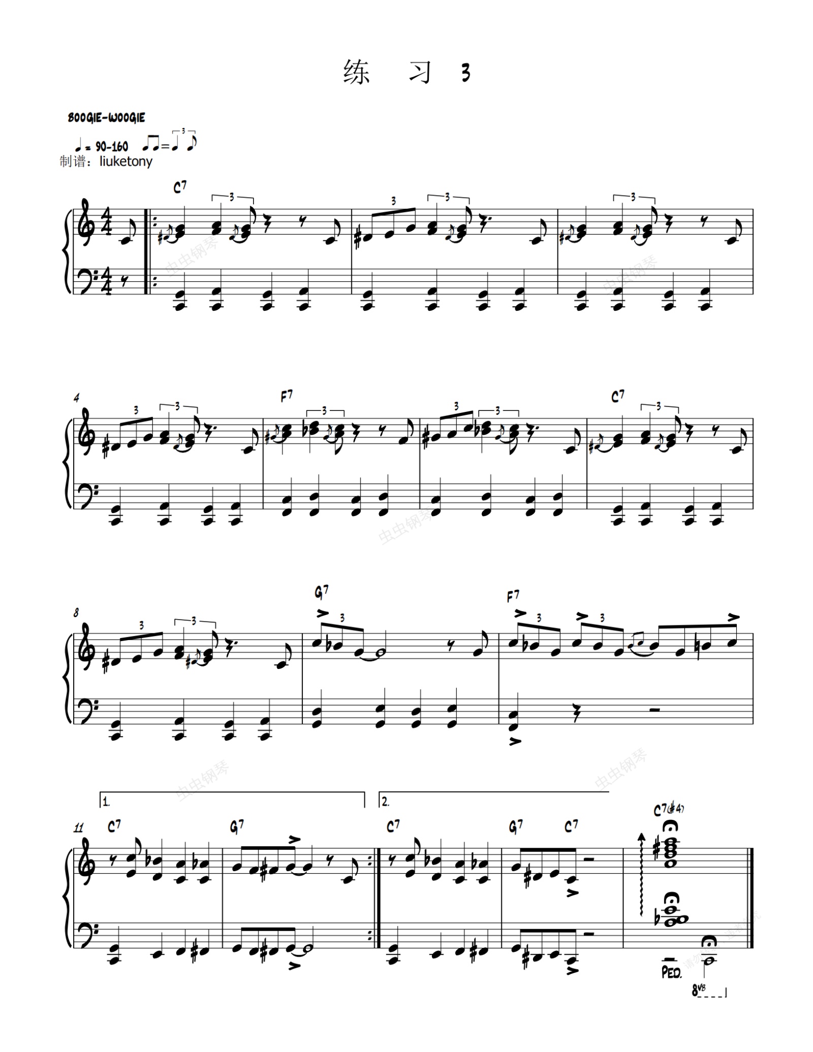 钢琴谱:中国音乐学院爵士钢琴考级 二级 练习3