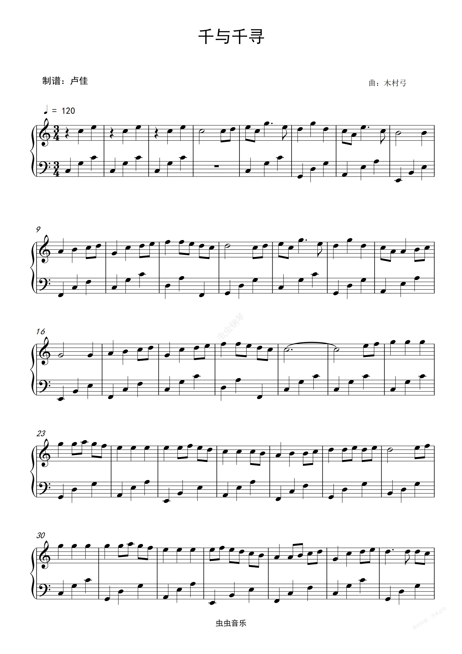 钢琴谱:千与千寻(简易版)