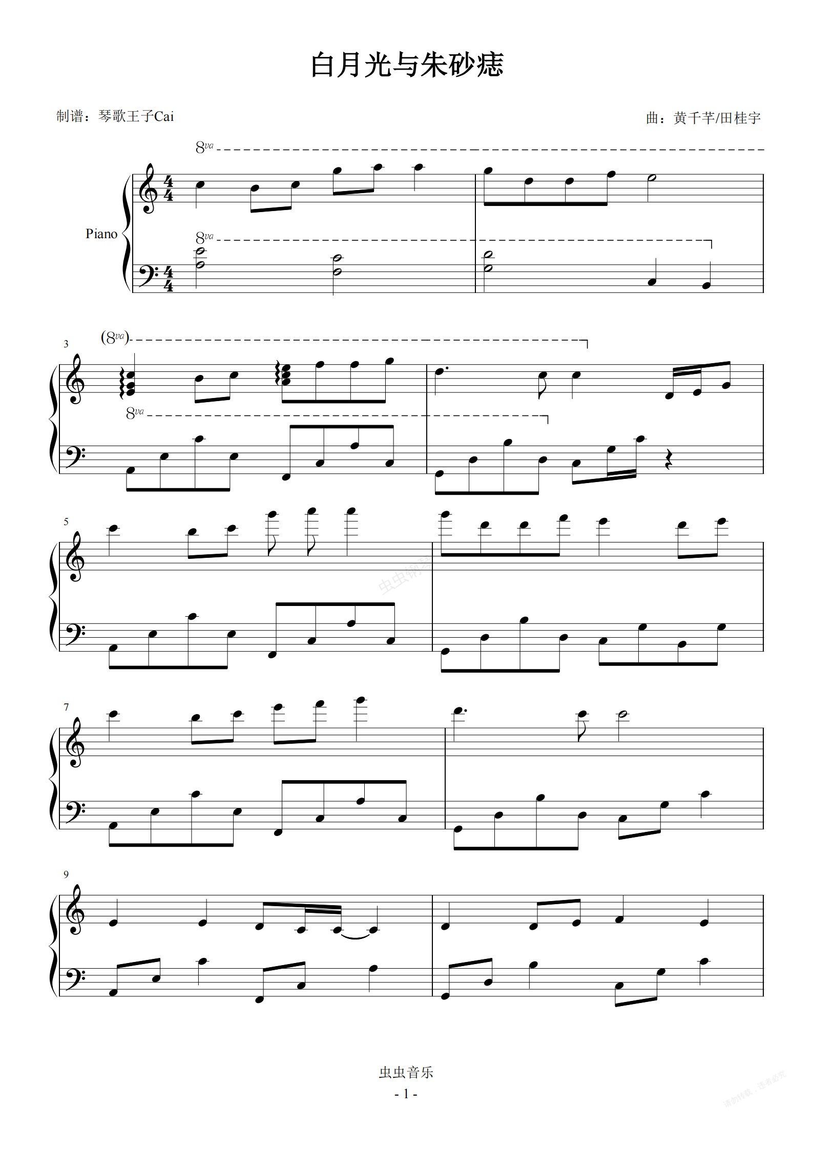 钢琴谱:白月光与朱砂痣(初级版)C调
