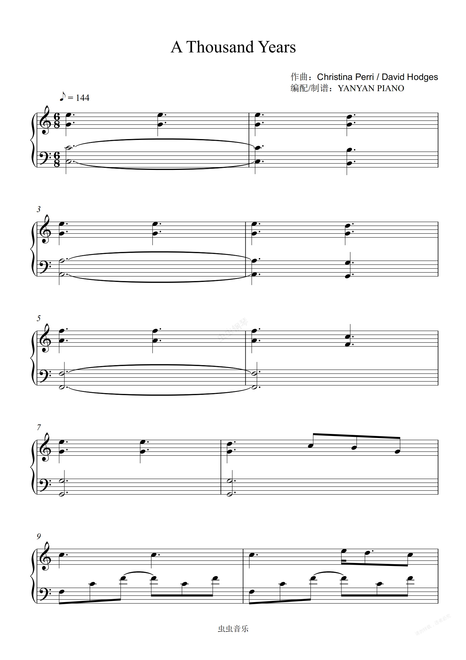 钢琴谱:暮光之城【A Thousand Years】Christina Perri
