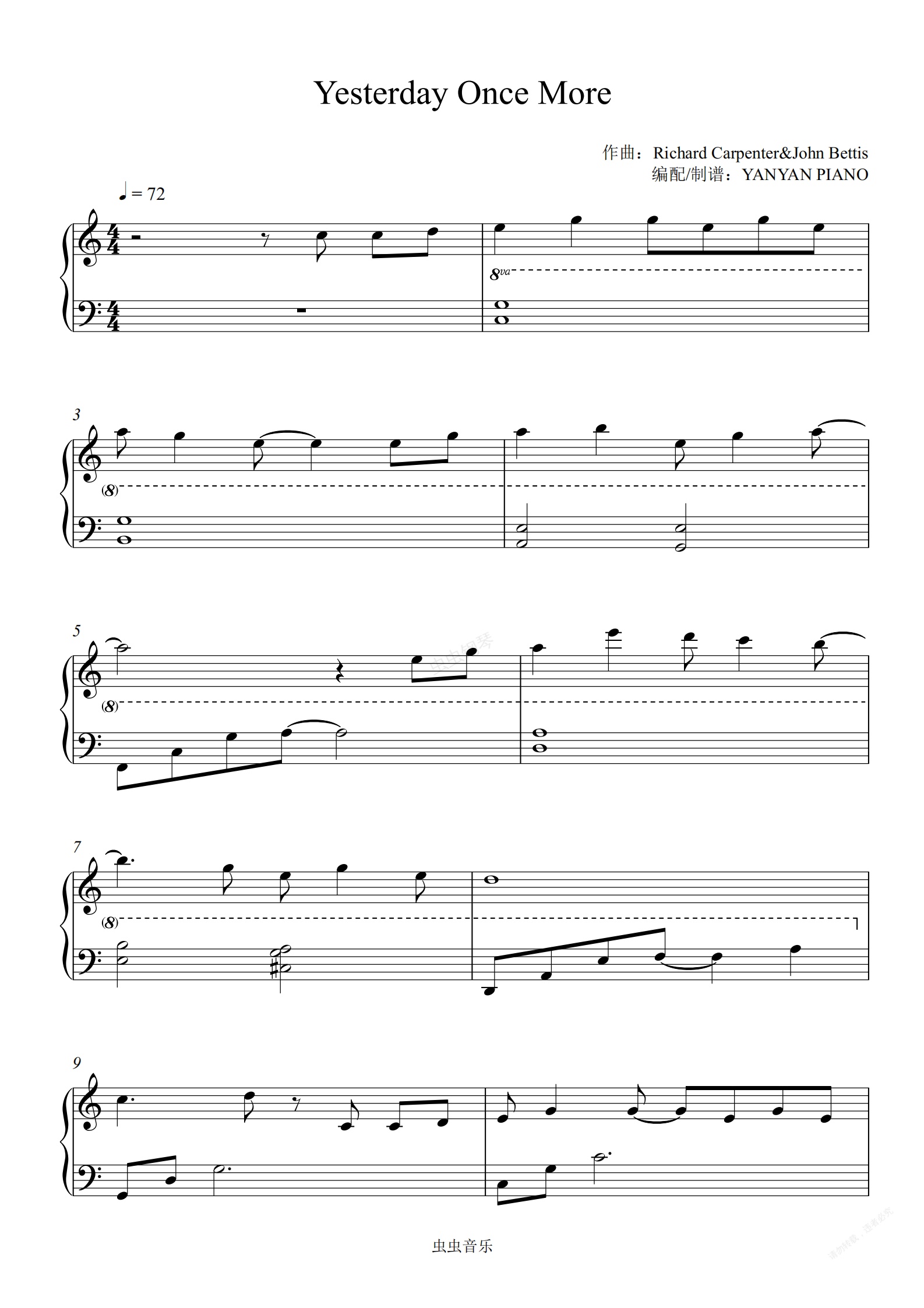 钢琴谱:昨日重现【Yesterday Once More】Carpenters