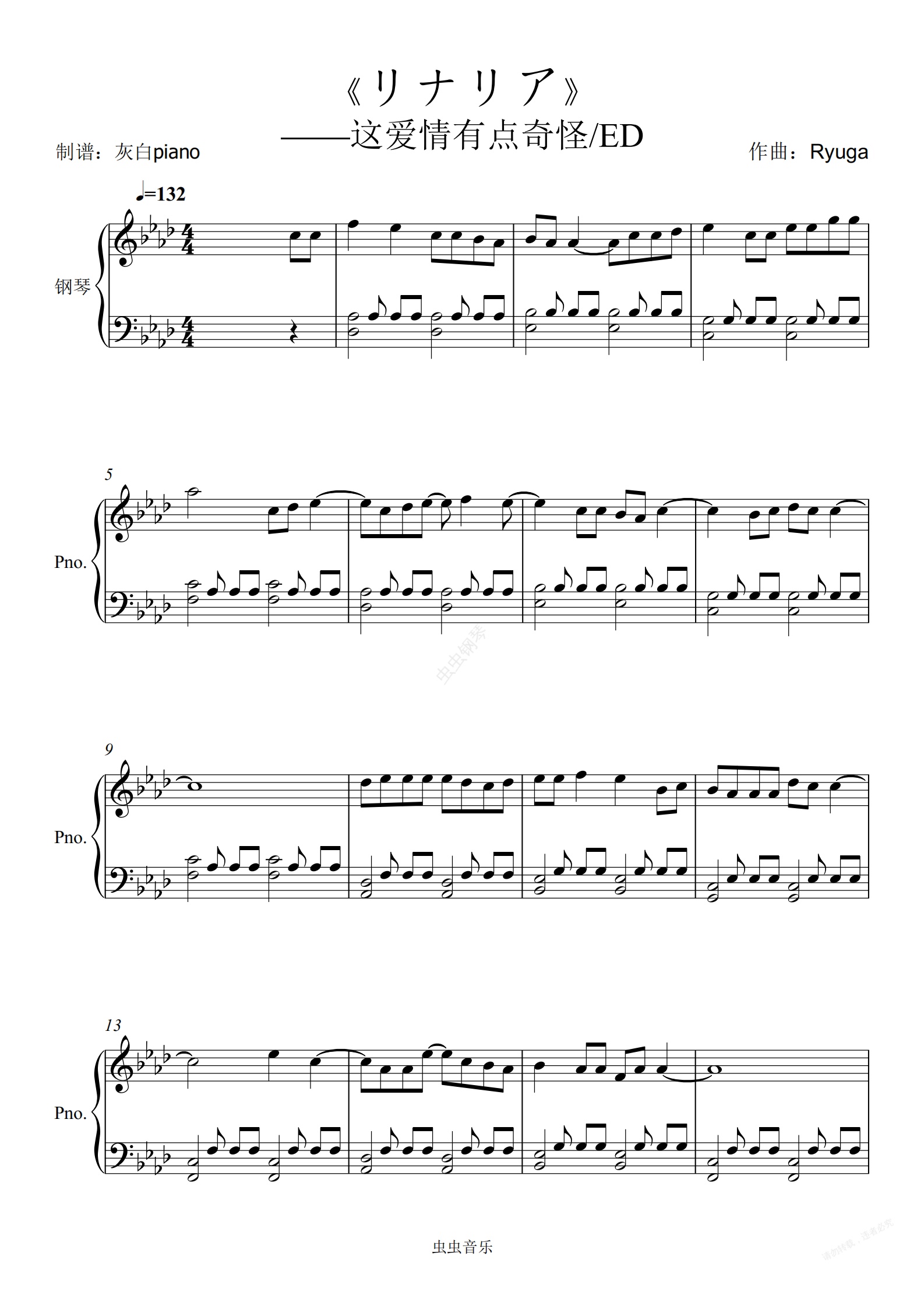 钢琴谱:这爱情有点奇怪/ED《リナリア》 高燃还原 -灰白