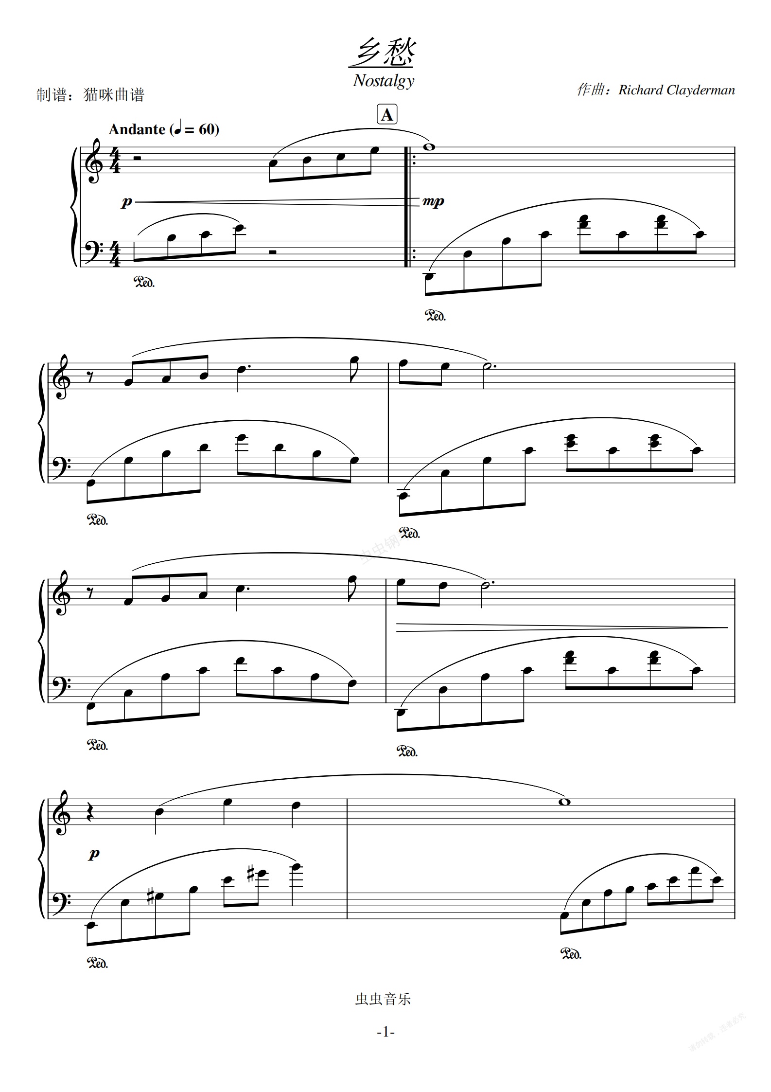 钢琴谱:乡愁 Nostalgy