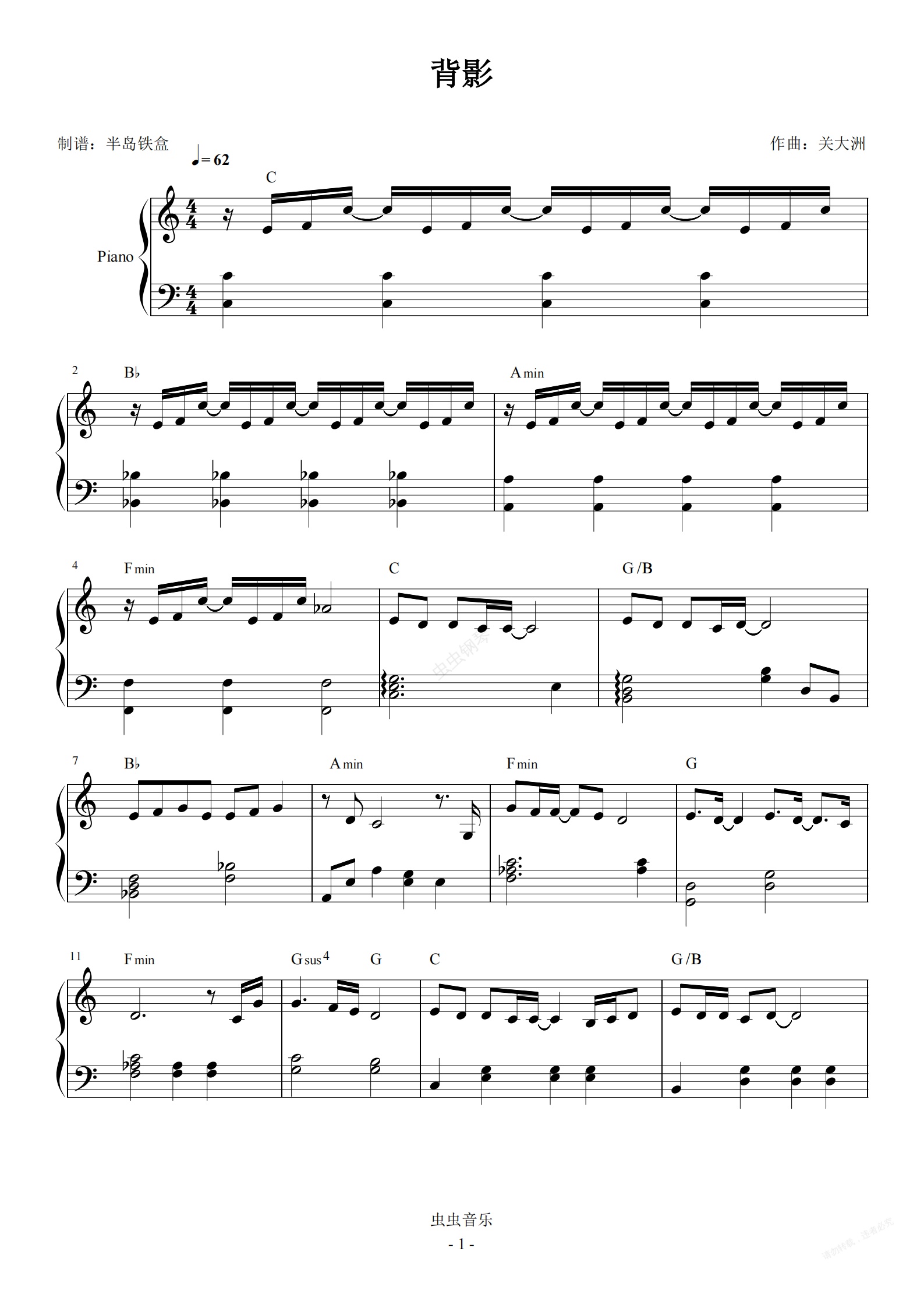 钢琴谱:背影 林宥嘉