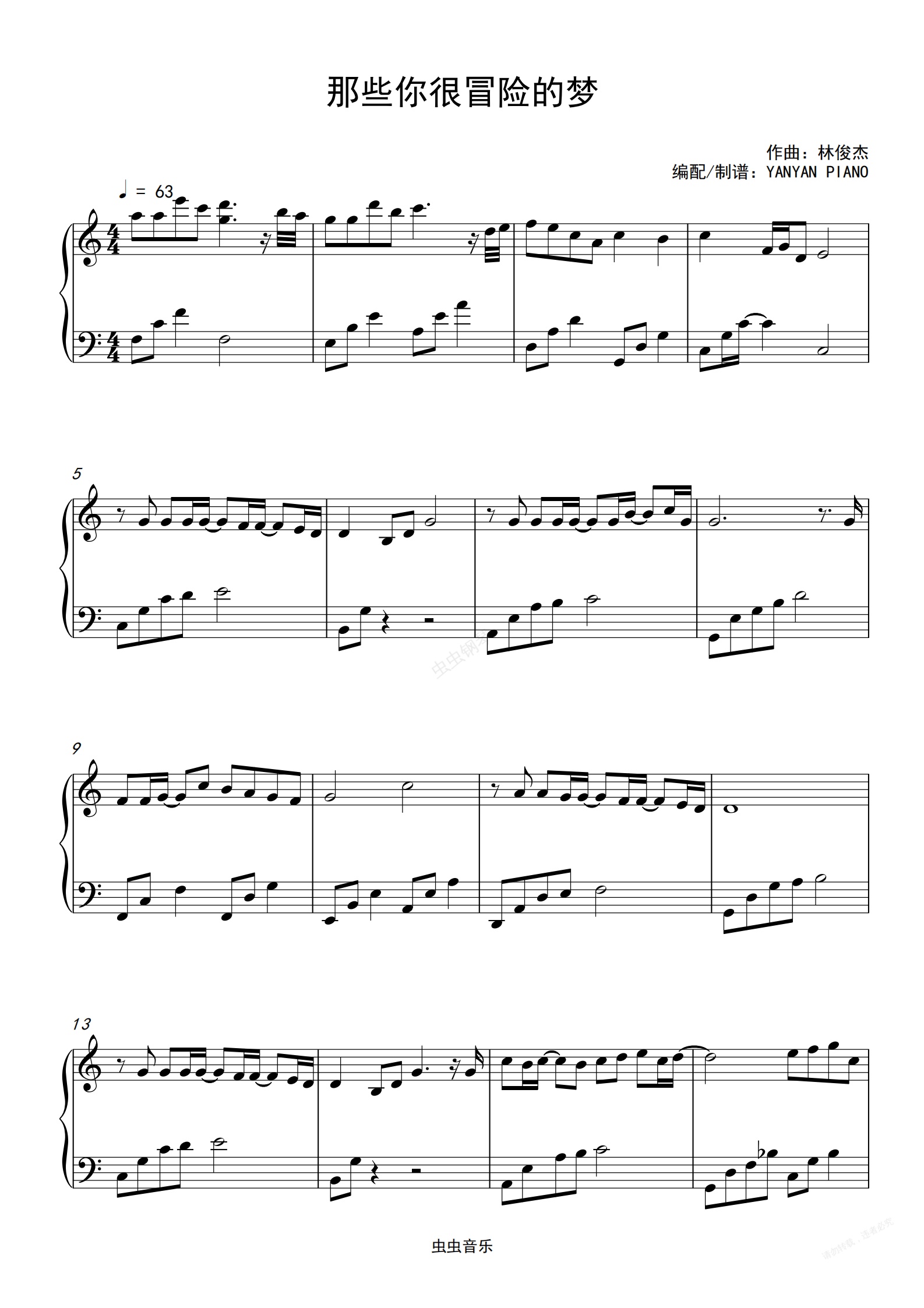 钢琴谱:林俊杰【那些你很冒险的梦】