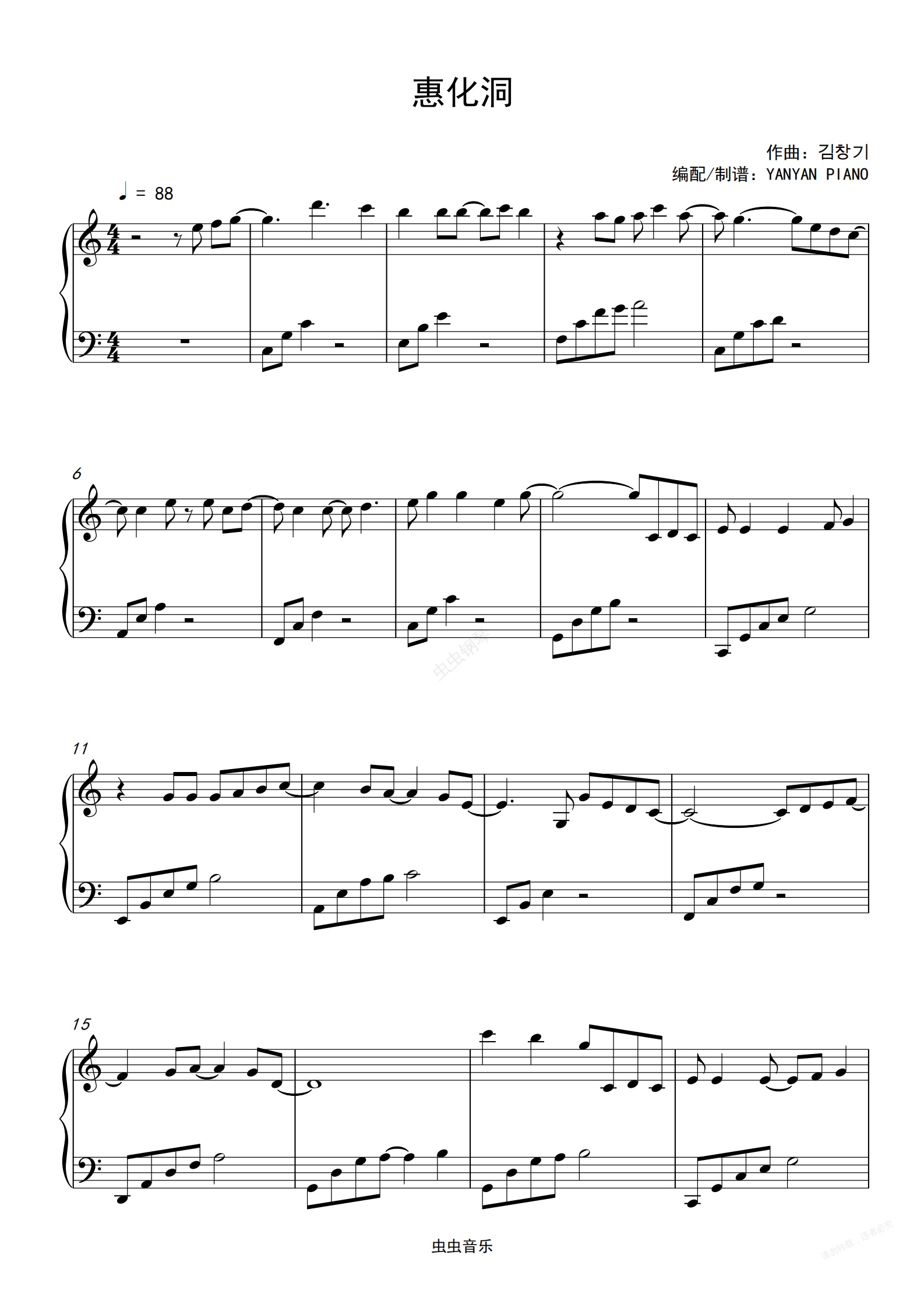 钢琴谱:请回答1988【惠化洞/双门洞】