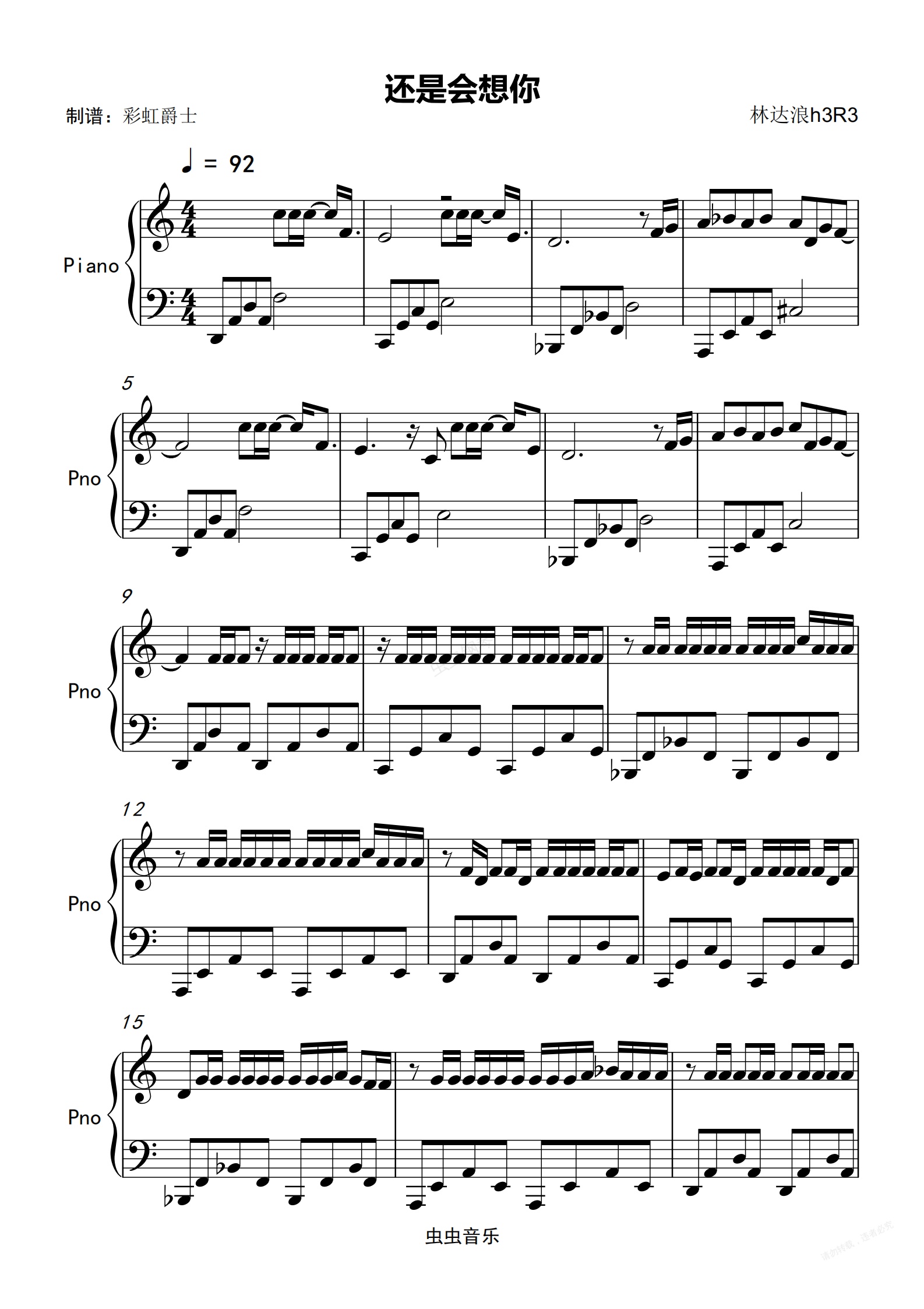 钢琴谱:还是会想你 林达浪 h3R3 简单版