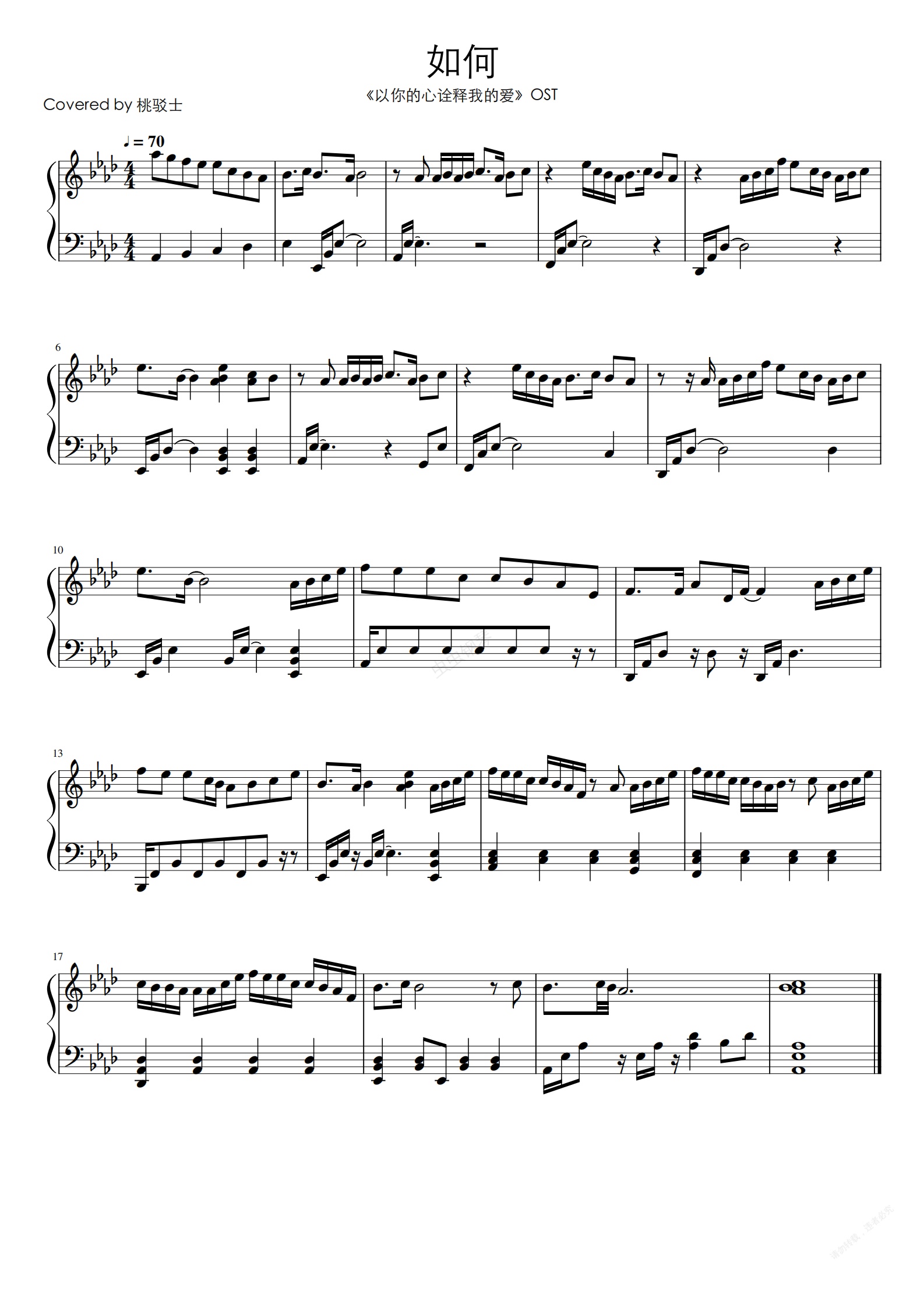 钢琴谱:如何-《以你的心诠释我的爱》主题曲