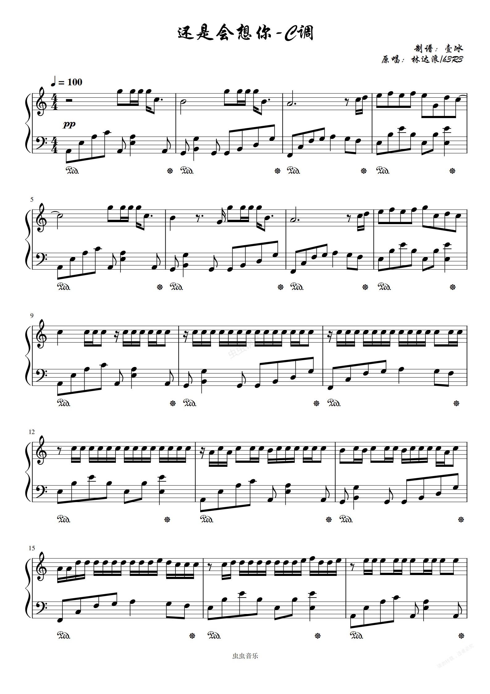 钢琴谱:还是会想你//林达浪/h3R3-C调简单易上手