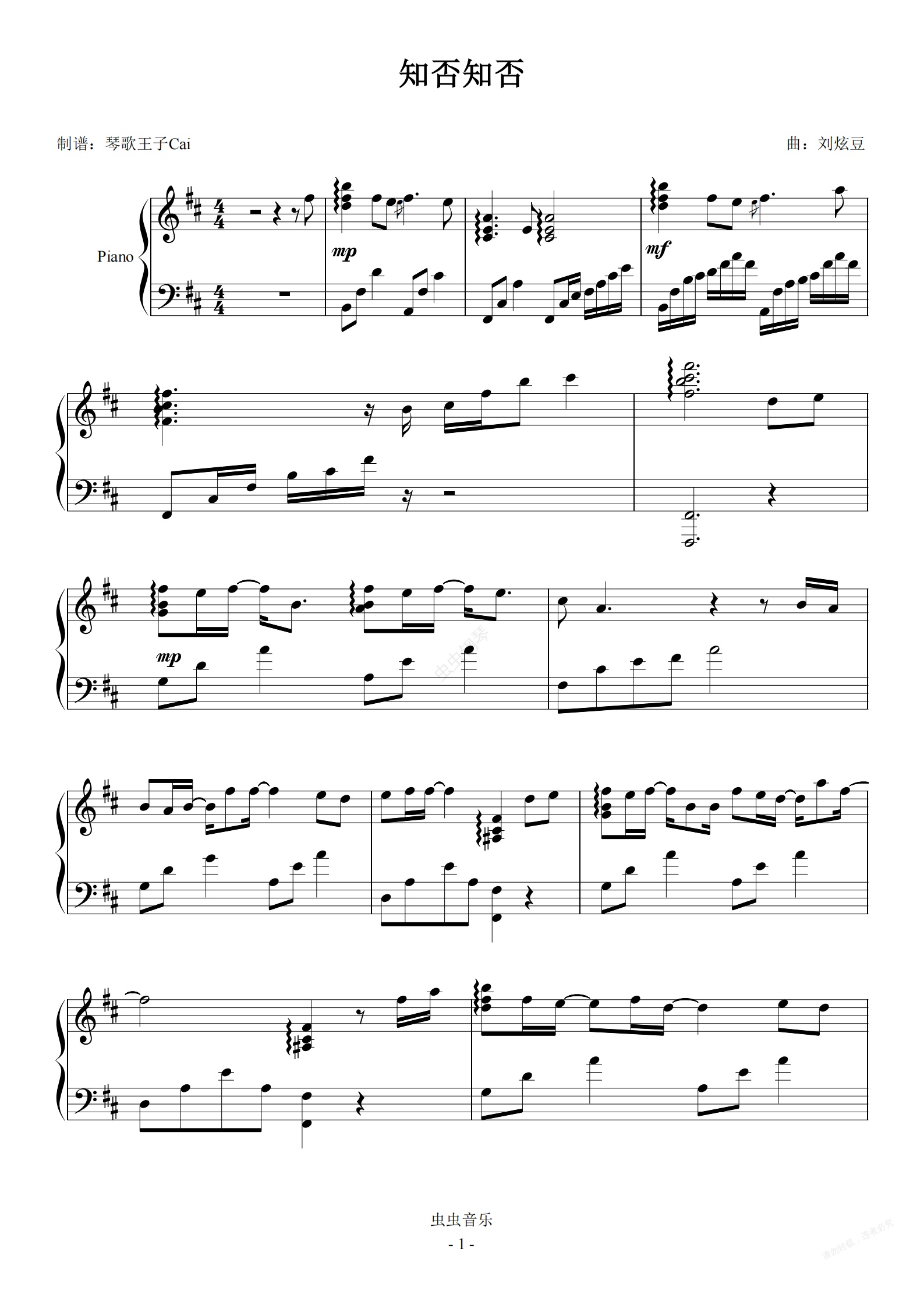 钢琴谱:知否知否(琴歌王子Cai钢琴版)原调