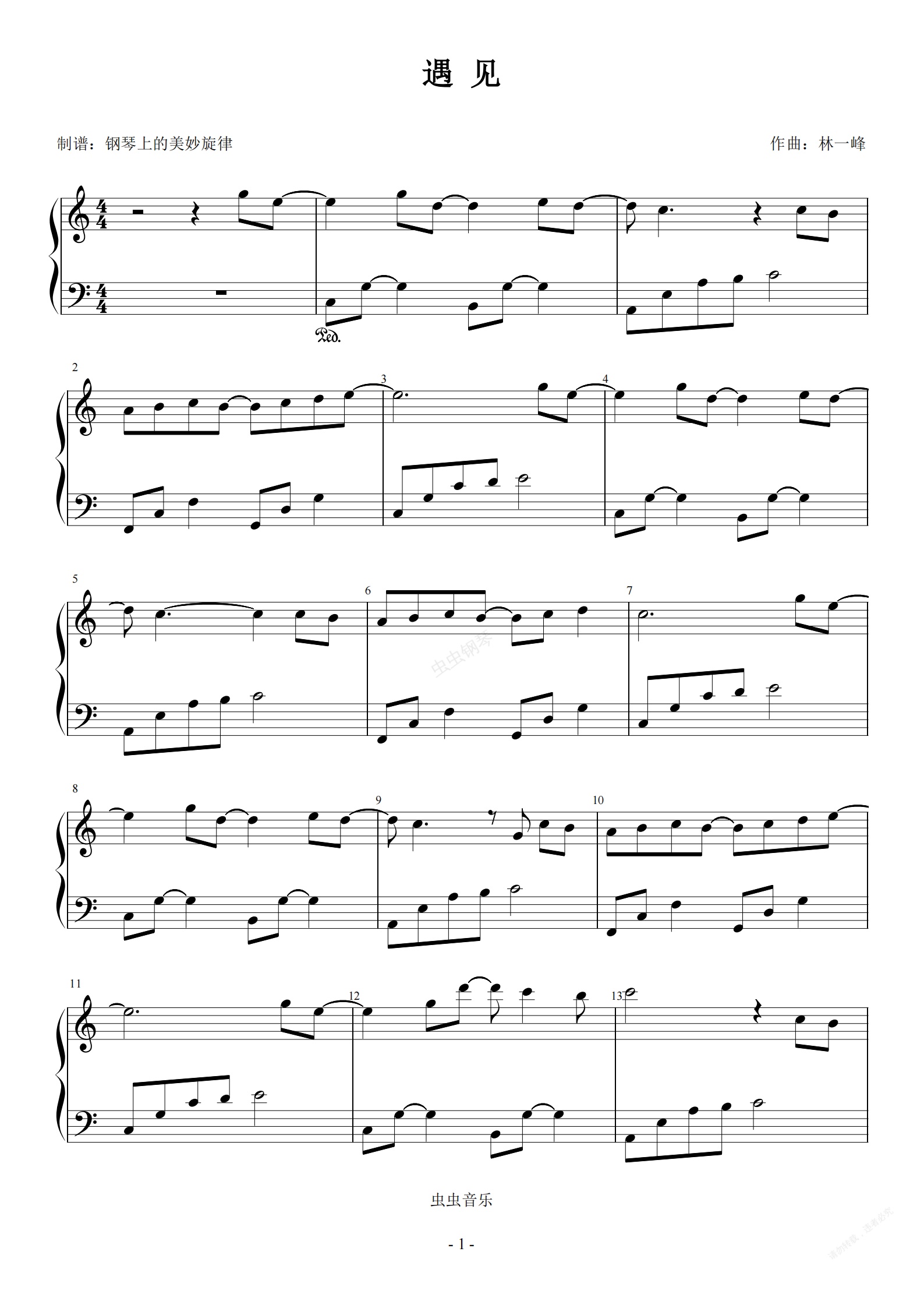 钢琴谱:遇见 C调简单版本 容易弹
