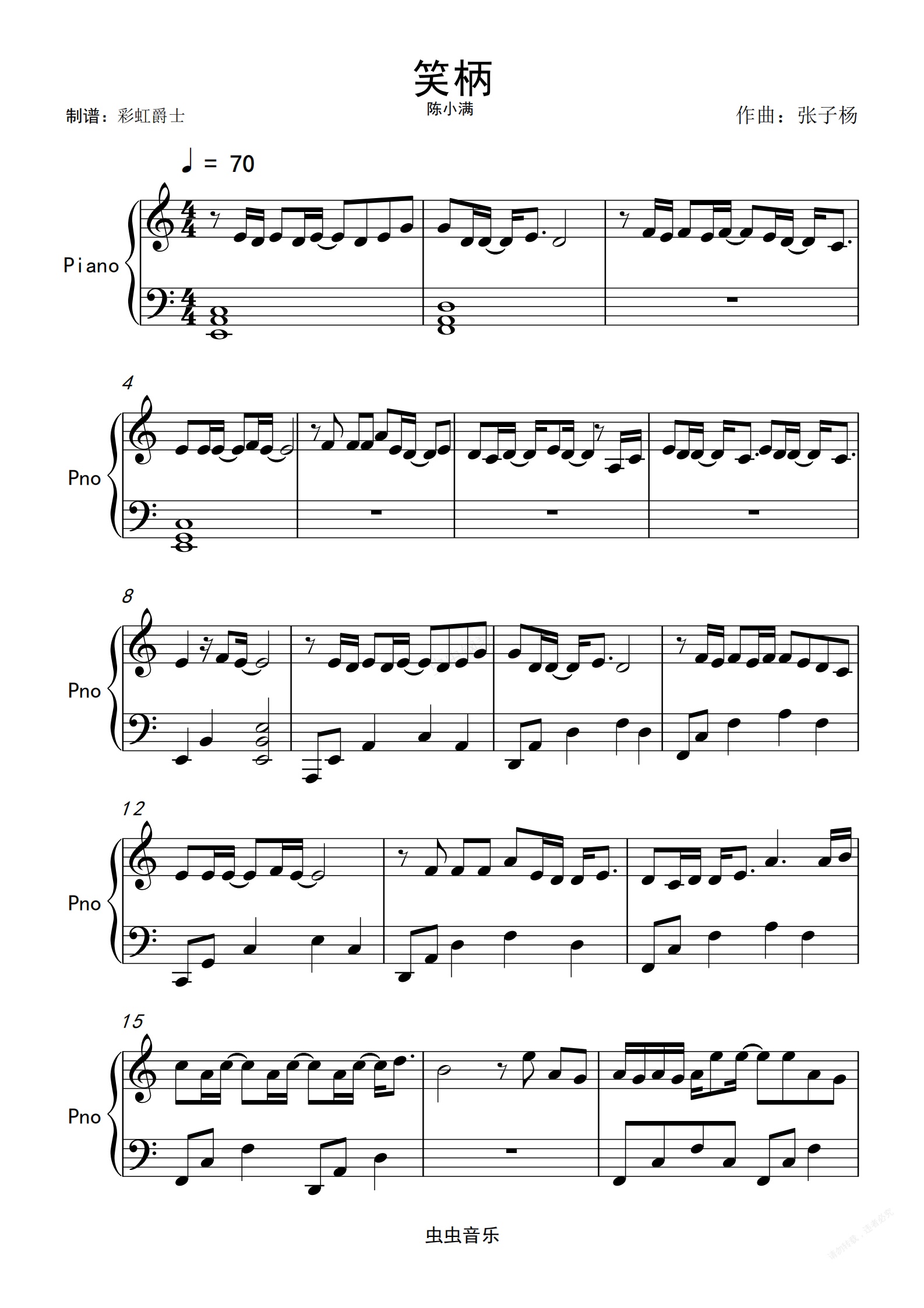 钢琴谱:笑柄 C调简单版 陈小满 抖音热歌