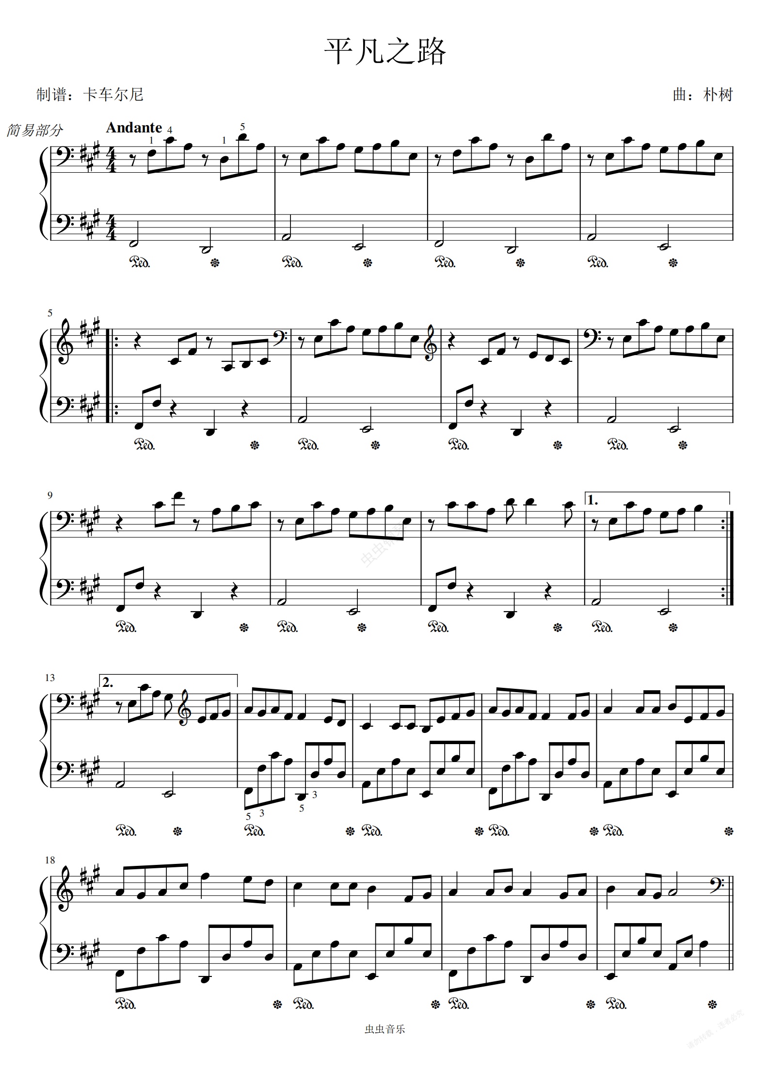 钢琴谱:《后会无期》的主题曲《平凡之路》精简版