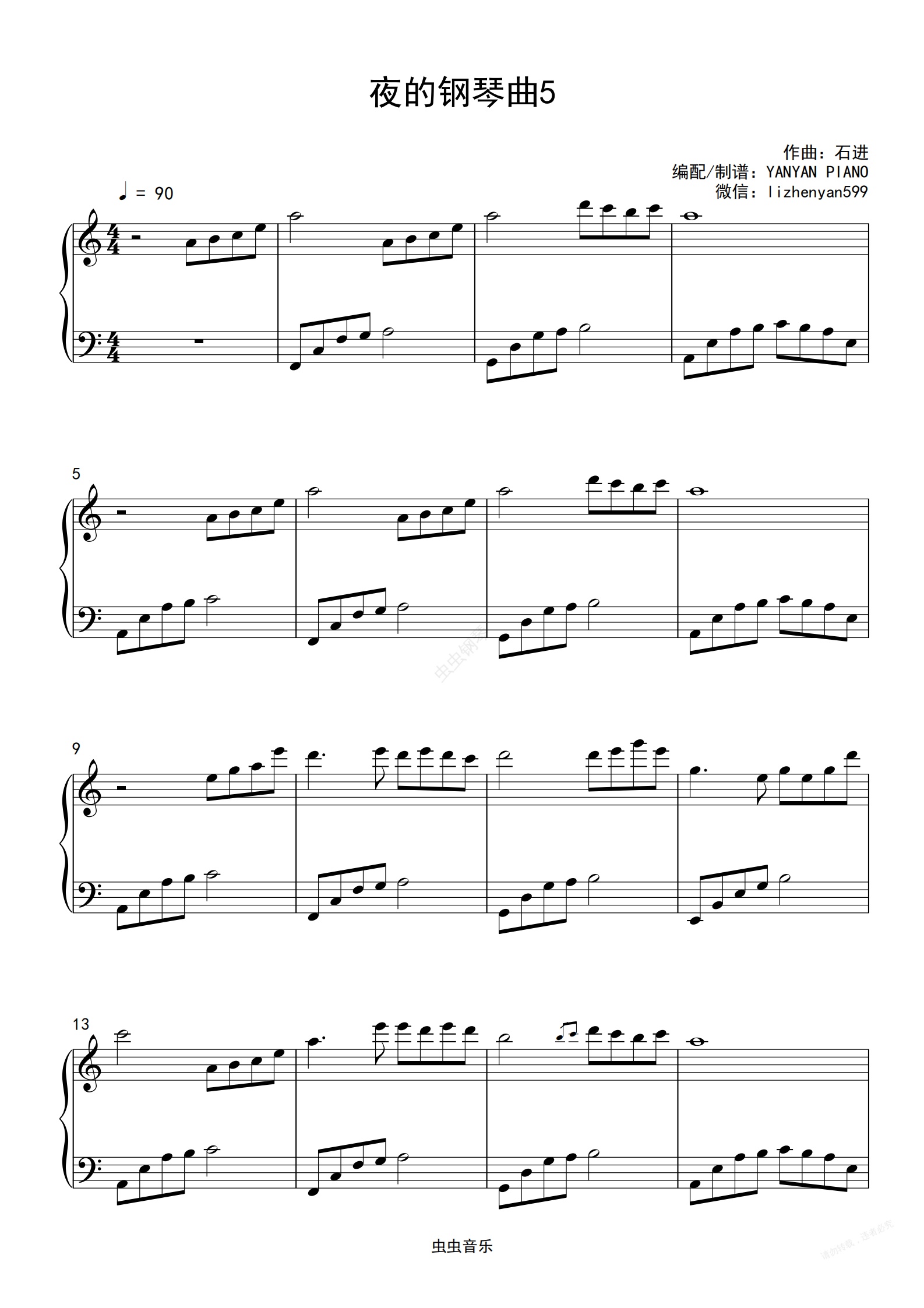 钢琴谱:石进【夜的钢琴曲5】