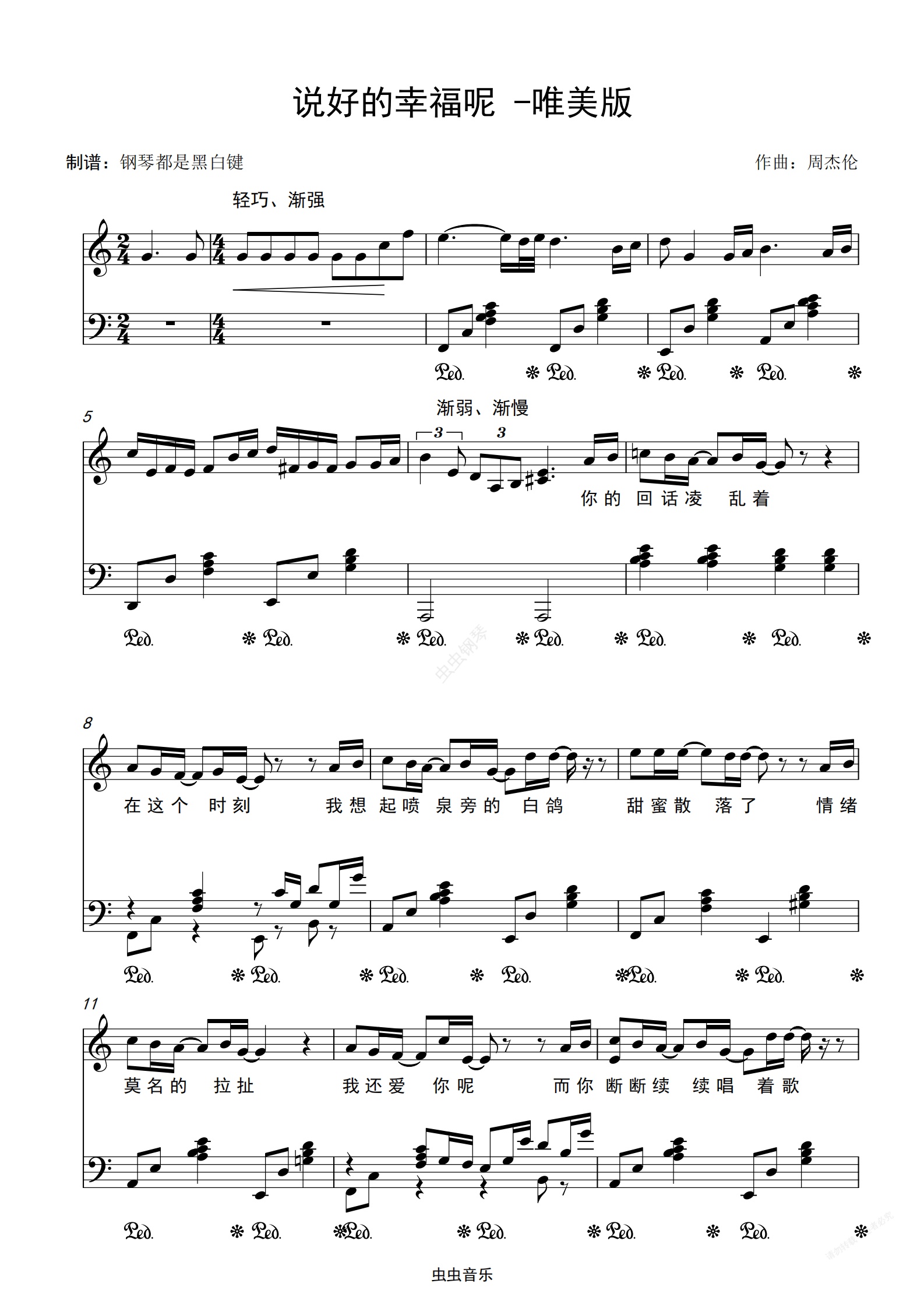 钢琴谱:说好的幸福呢 唯美版超高还原 附歌词