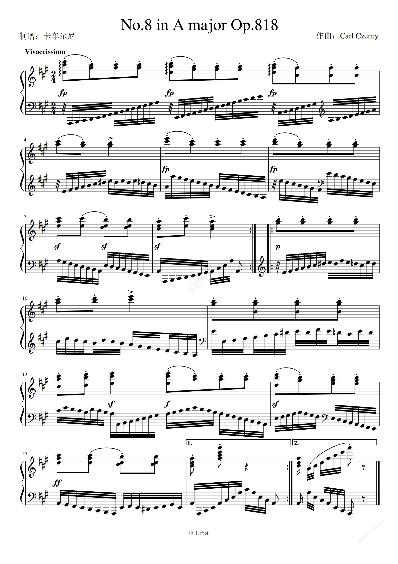 钢琴谱:车尔尼版 儿歌《轻轻划》Op.818 No.8