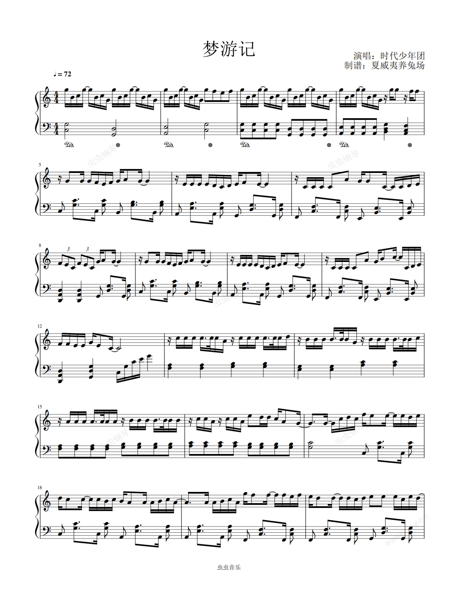 钢琴谱:梦游记-时代少年团