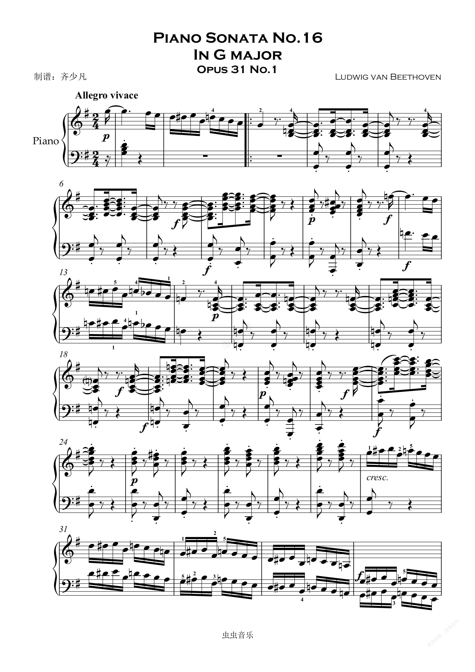第十六钢琴奏鸣曲G大调-贝多芬钢琴奏鸣曲全集计划