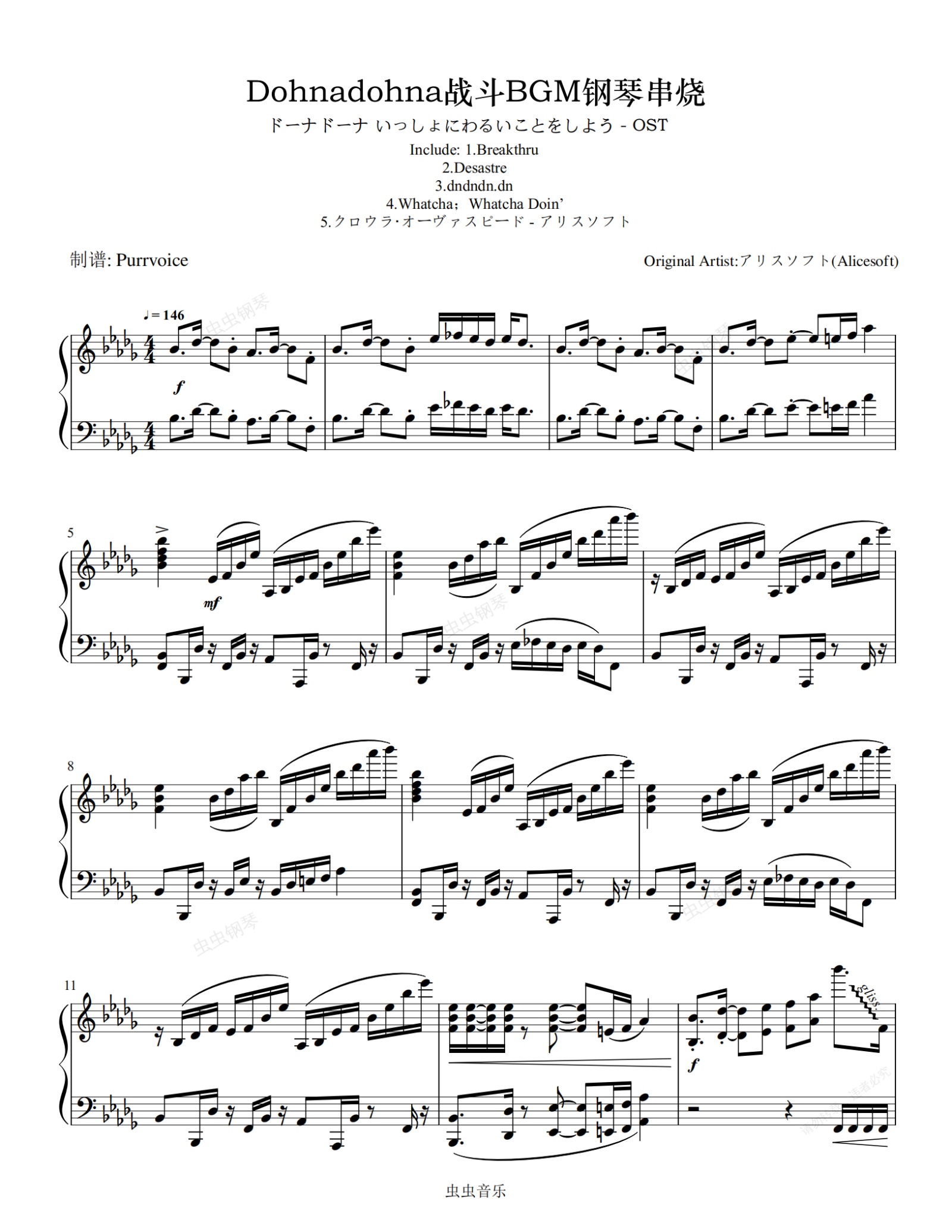 钢琴谱:Dohna Dohna多娜多娜战斗BGM改编