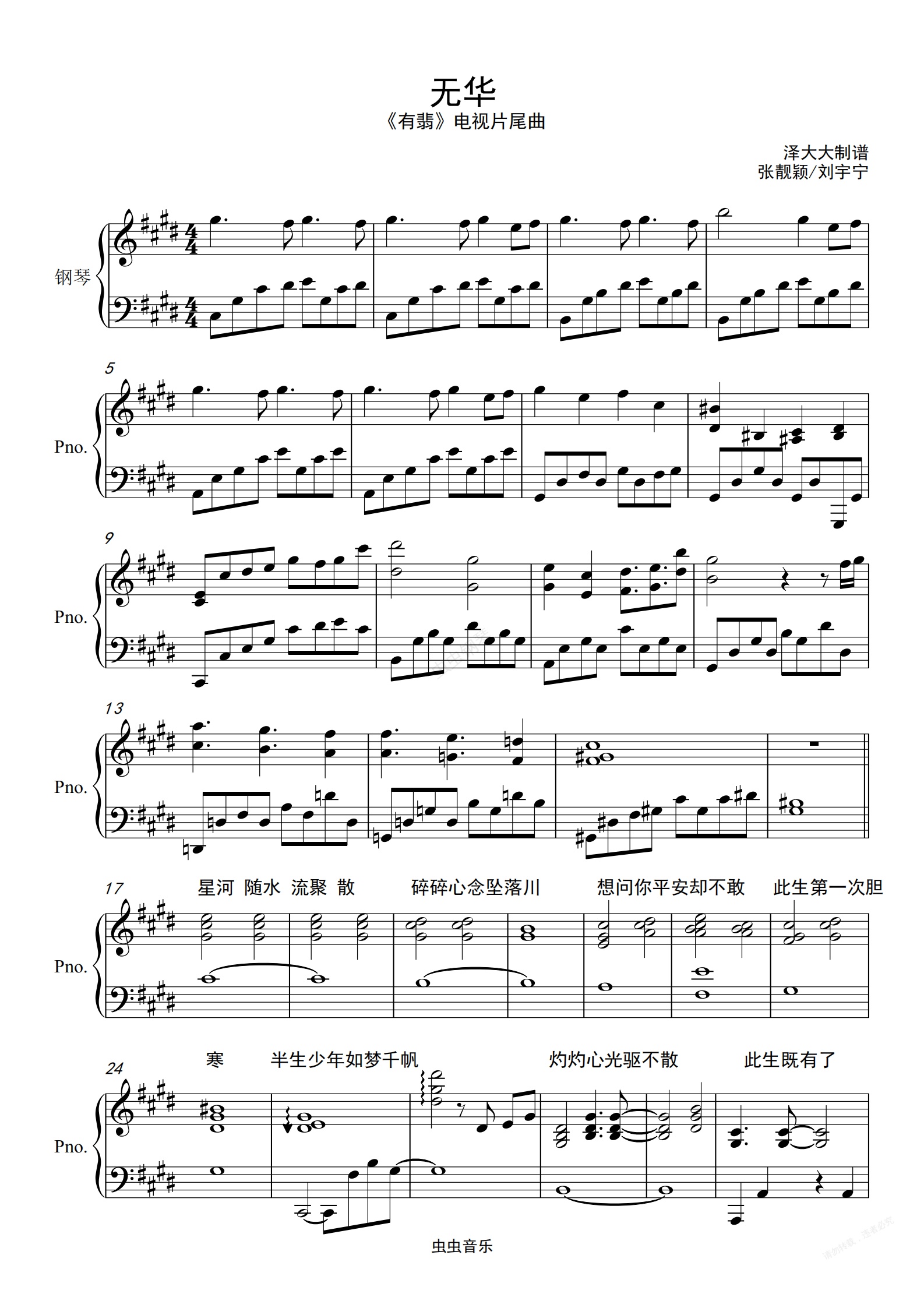 钢琴谱:《有翡》无华 原调【完美伴奏附词】张靓颖 摩登兄弟 泽大大