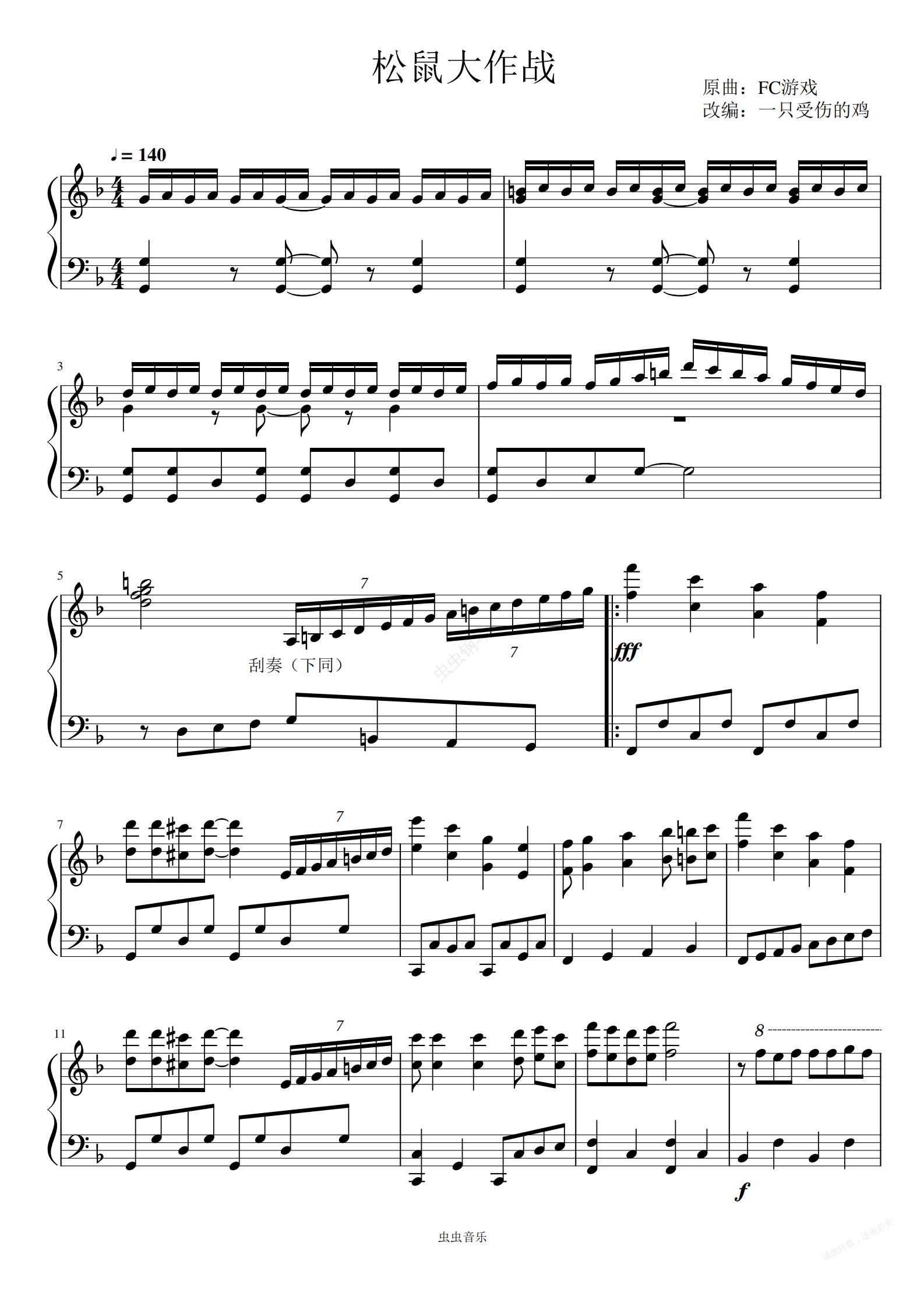 松鼠大作战BGM,做了适当的简化,难度降低很多,适合初学者